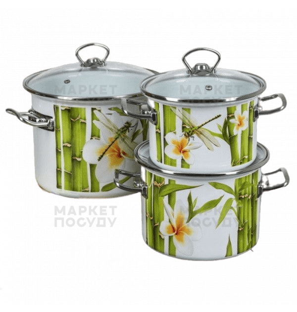 Набір каструль Idilia Бамбук 3 пр цил 2 л/3 л/5,5 л білий (1500)