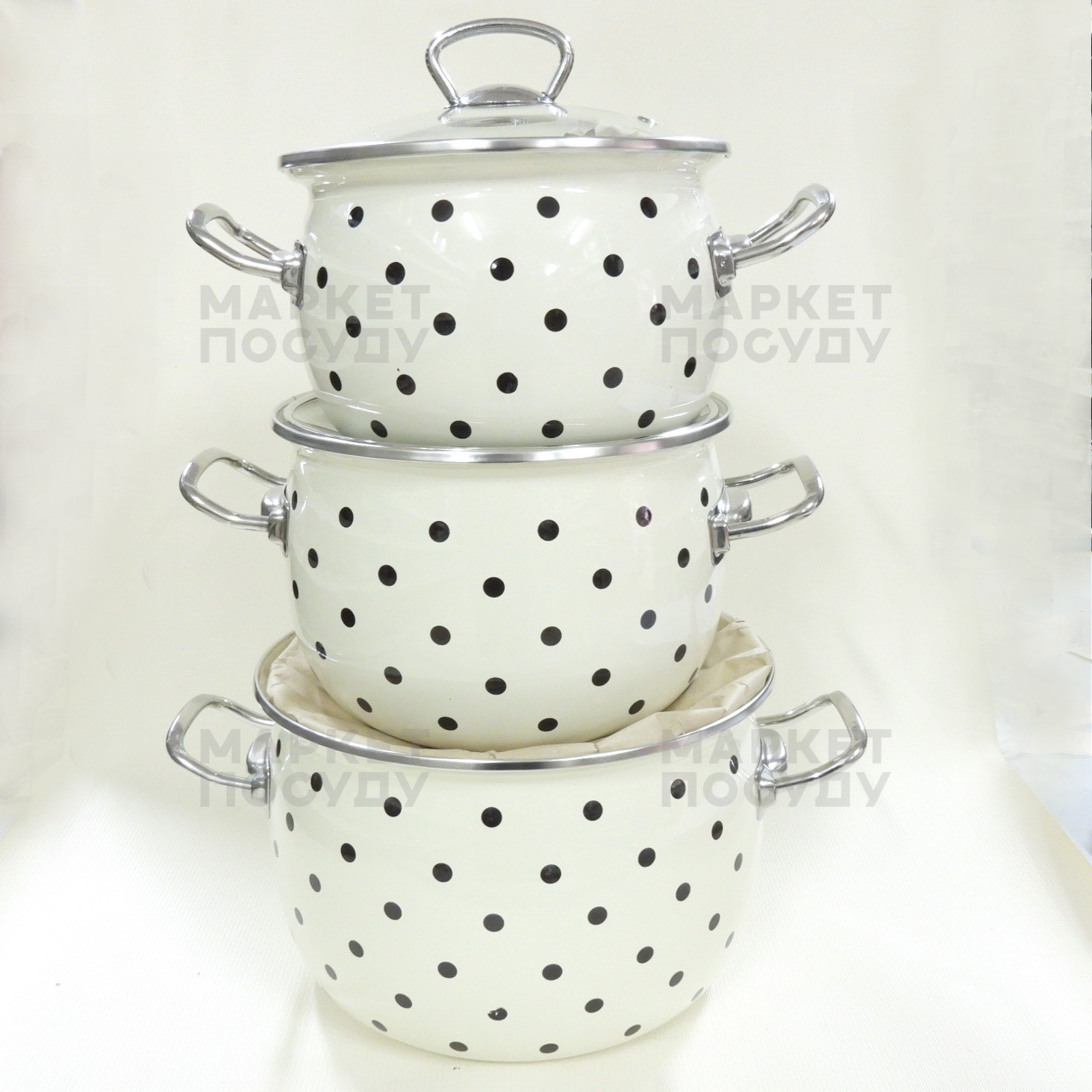 Набір каструль Idilia Чорні перли молочна 3 предмети 2,5л/3,5л/5л (1600)