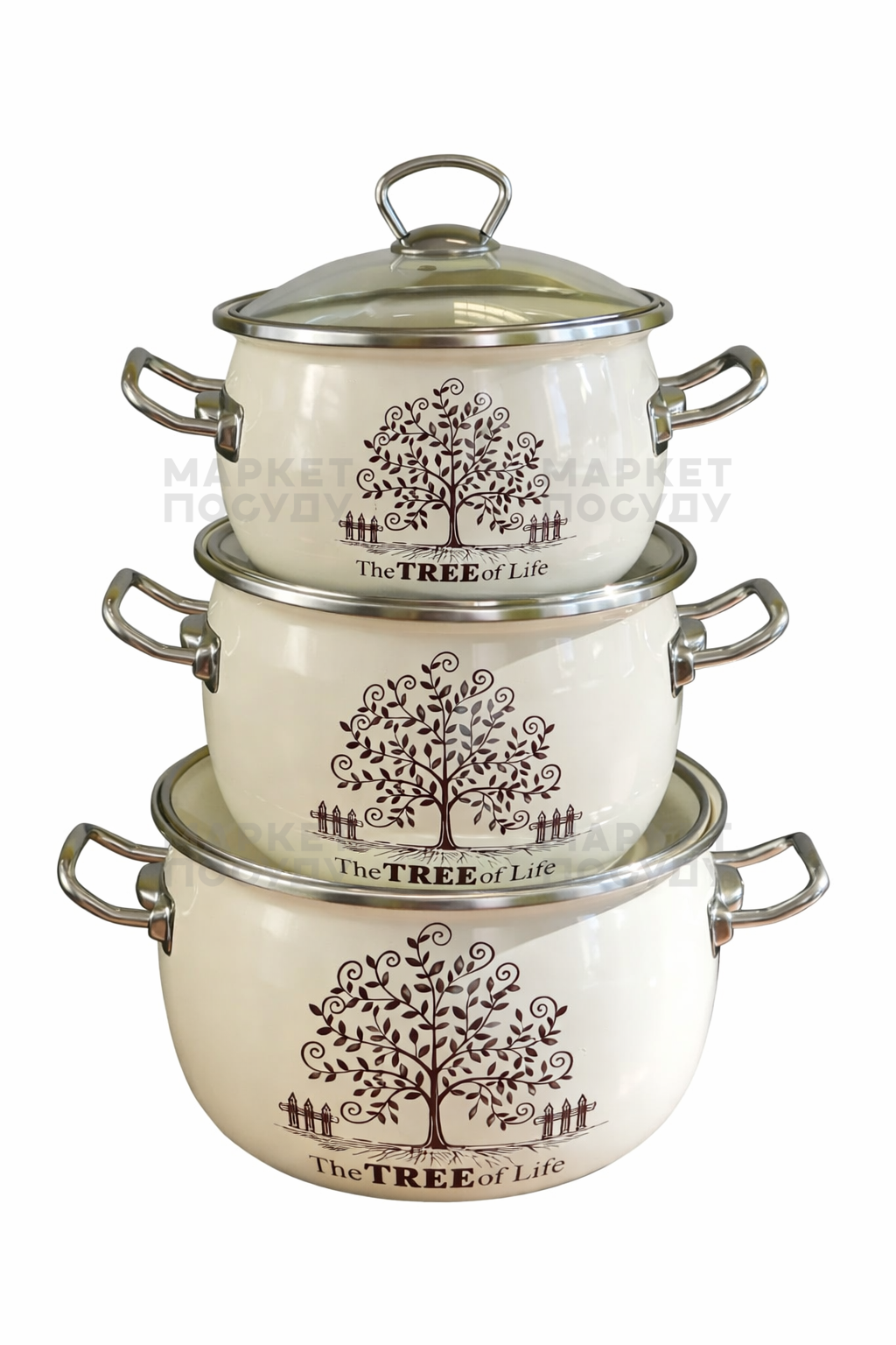 Набір каструль Idilia Дерево щастя молочна 3 предмети 2,5л/3,5л/5л (1600)