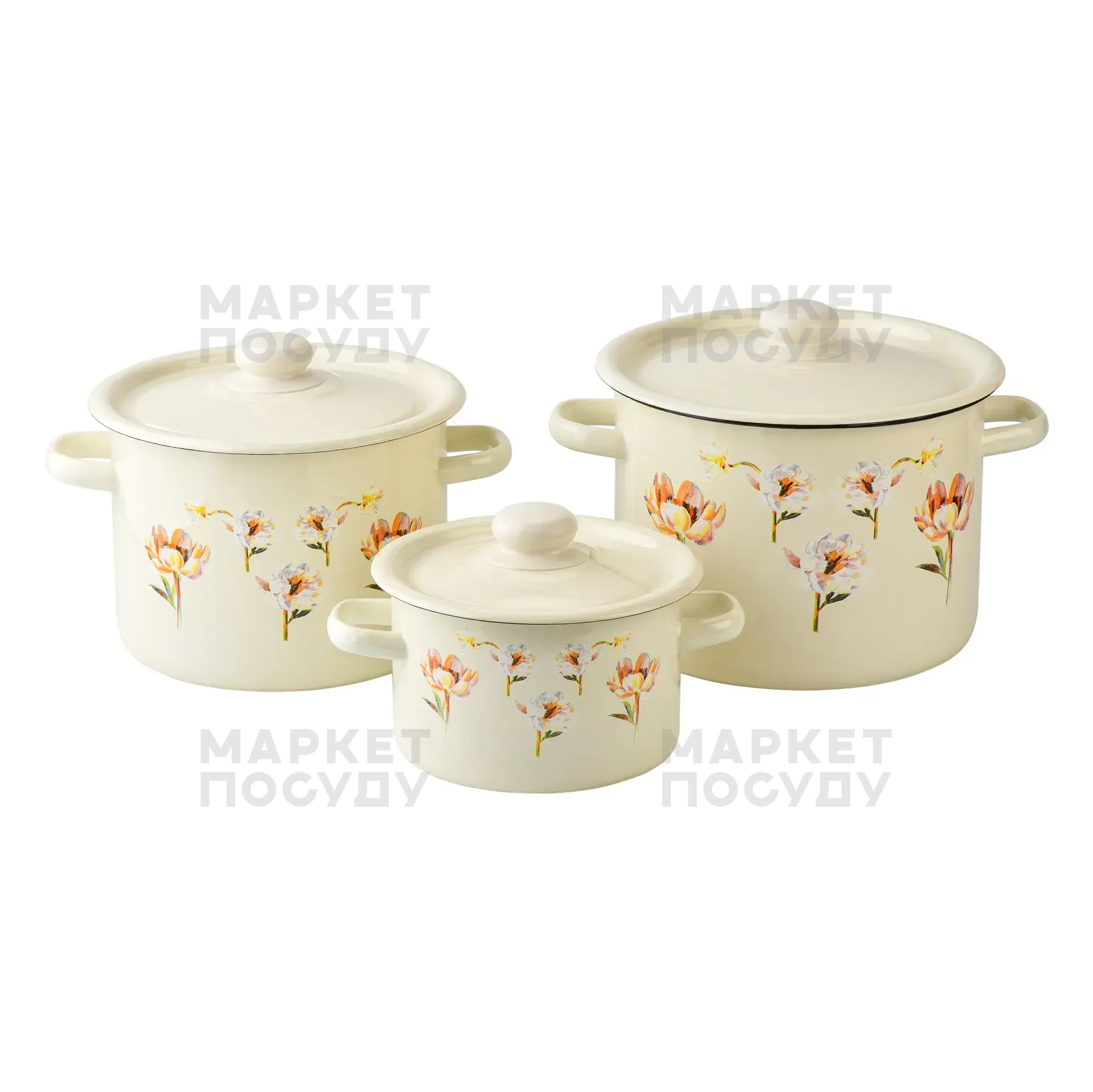 Набір каструль Idilia Квіткова фантазія молочна 3 предмети 2/4,5/5,5л (242)
