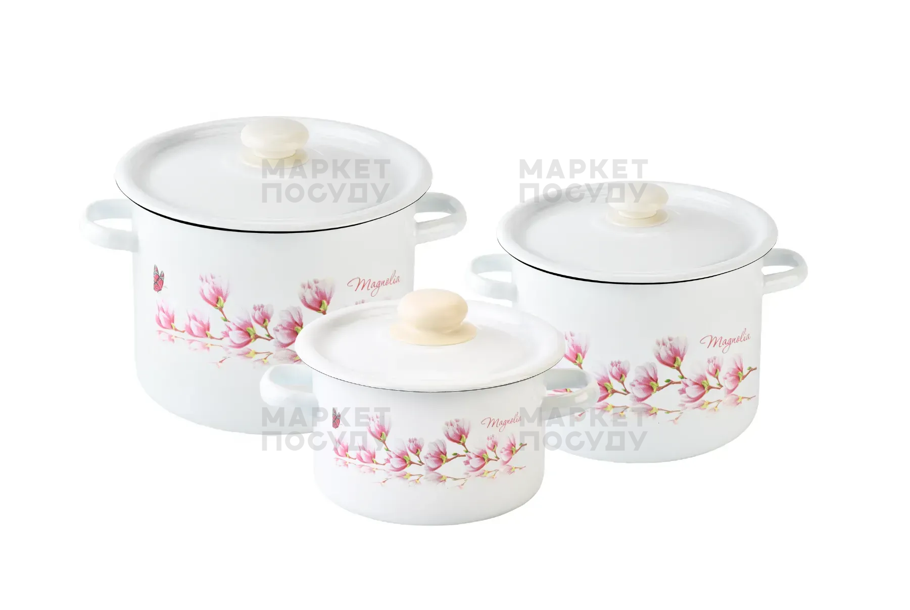 Набір каструль Idilia Магнолія біла 3 предмети 2/4,5/5,5л (242)