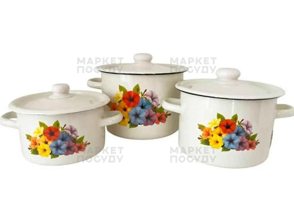 Набір каструль Idilia Петунія молочна 3 предмети 2/4,5/5,5л (242)