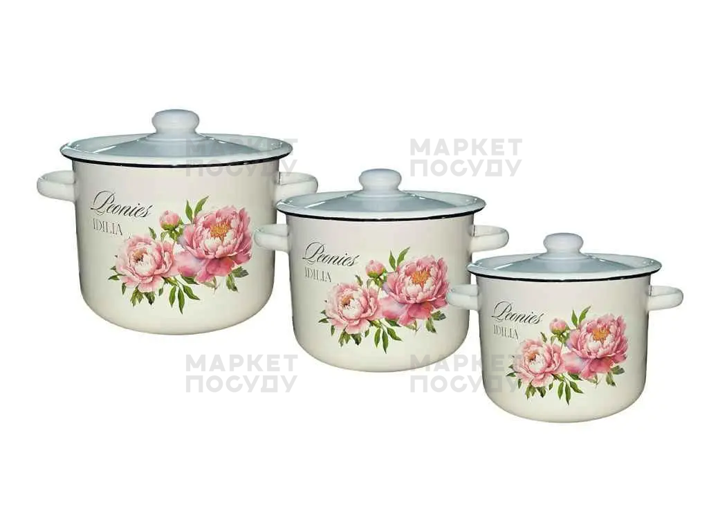 Набір каструль Idilia Півонія молочна 3 предмети 2/4,5/5,5л (242)
