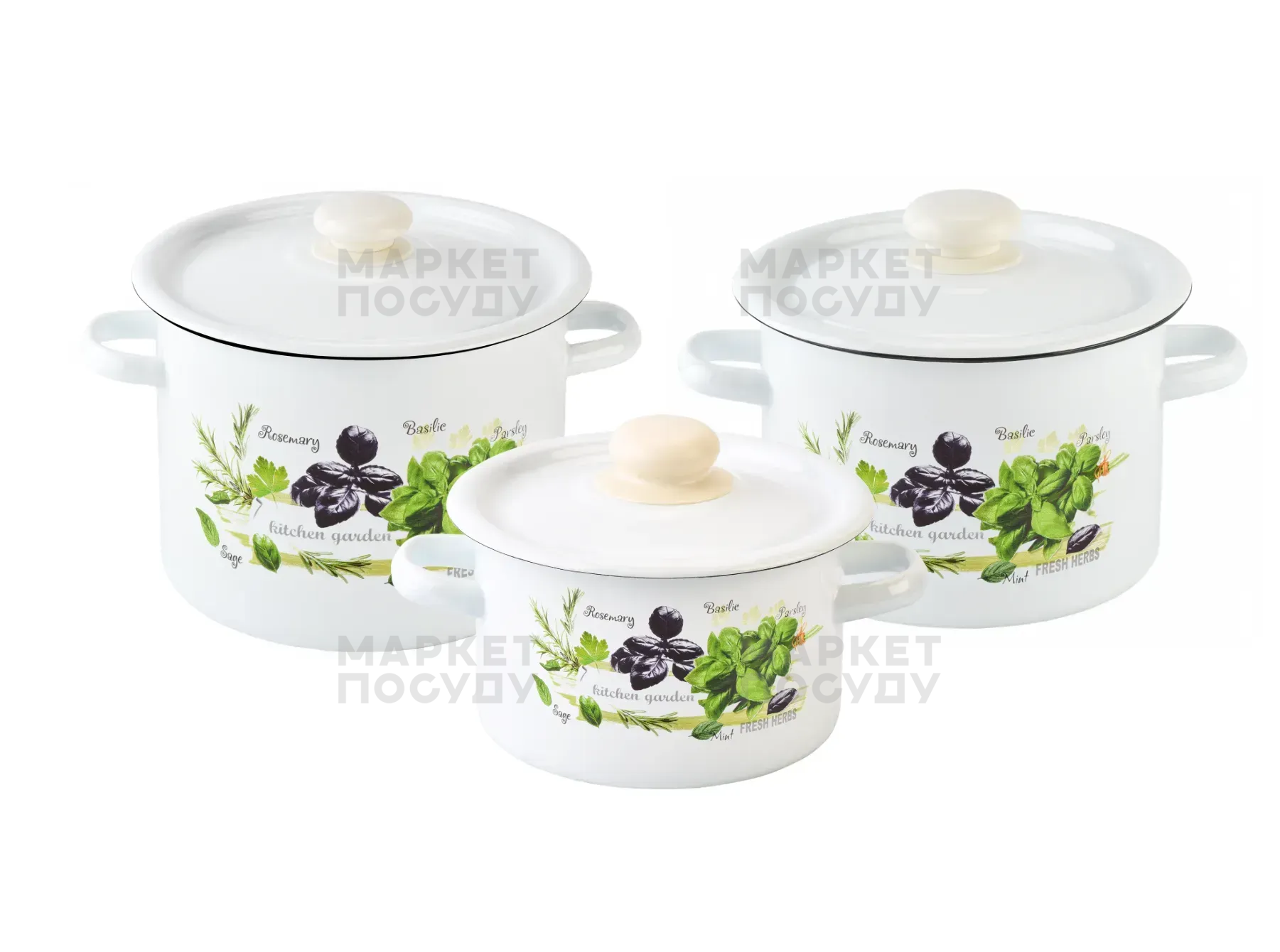 Набір каструль Idilia Зелень фреш білий 3 предмети 2л/3л/4,5л (272)