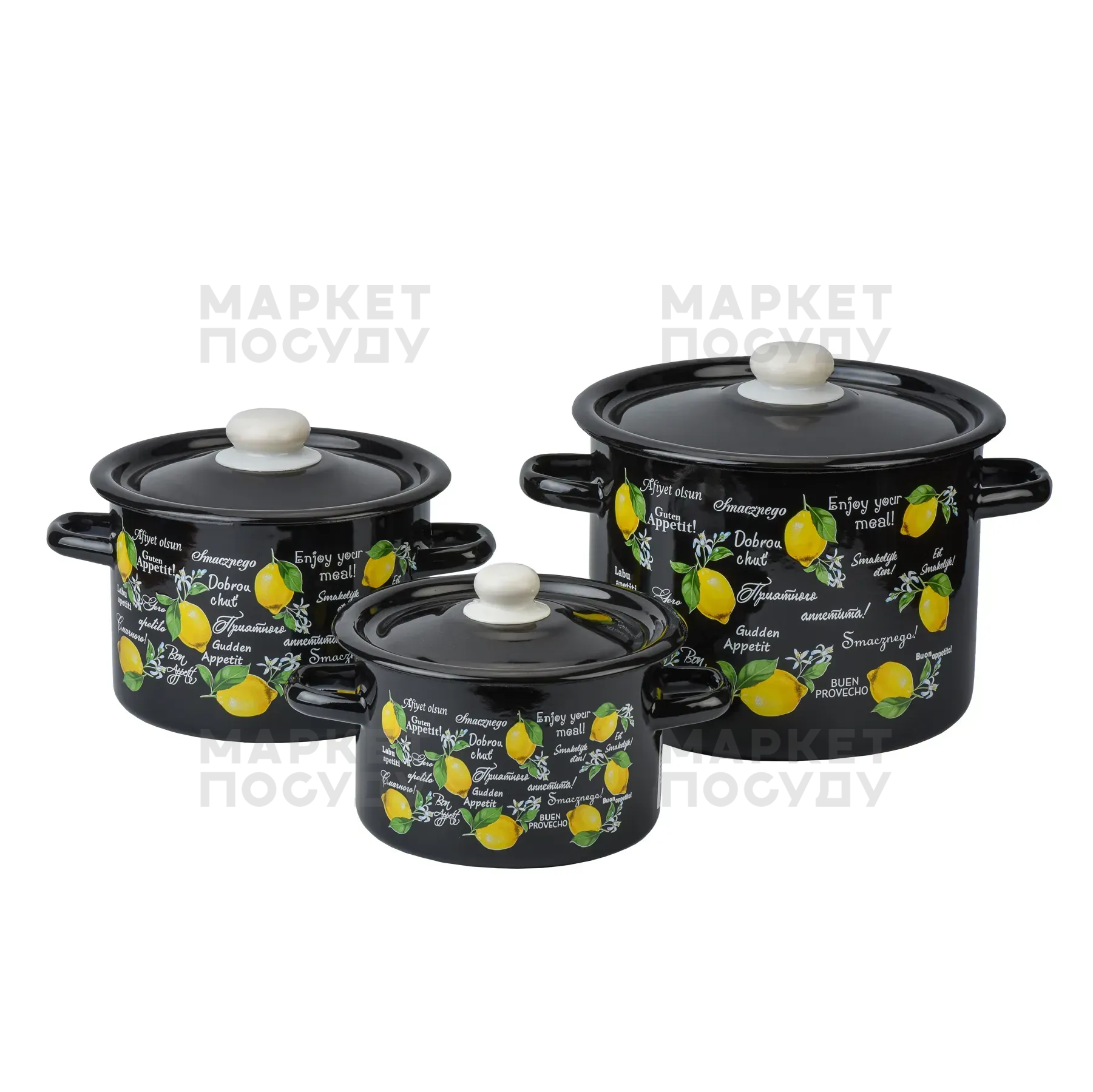 Набір каструль Idilia Фреш-лимон чорний 3 предмети 2л/3л/4,5л (274)