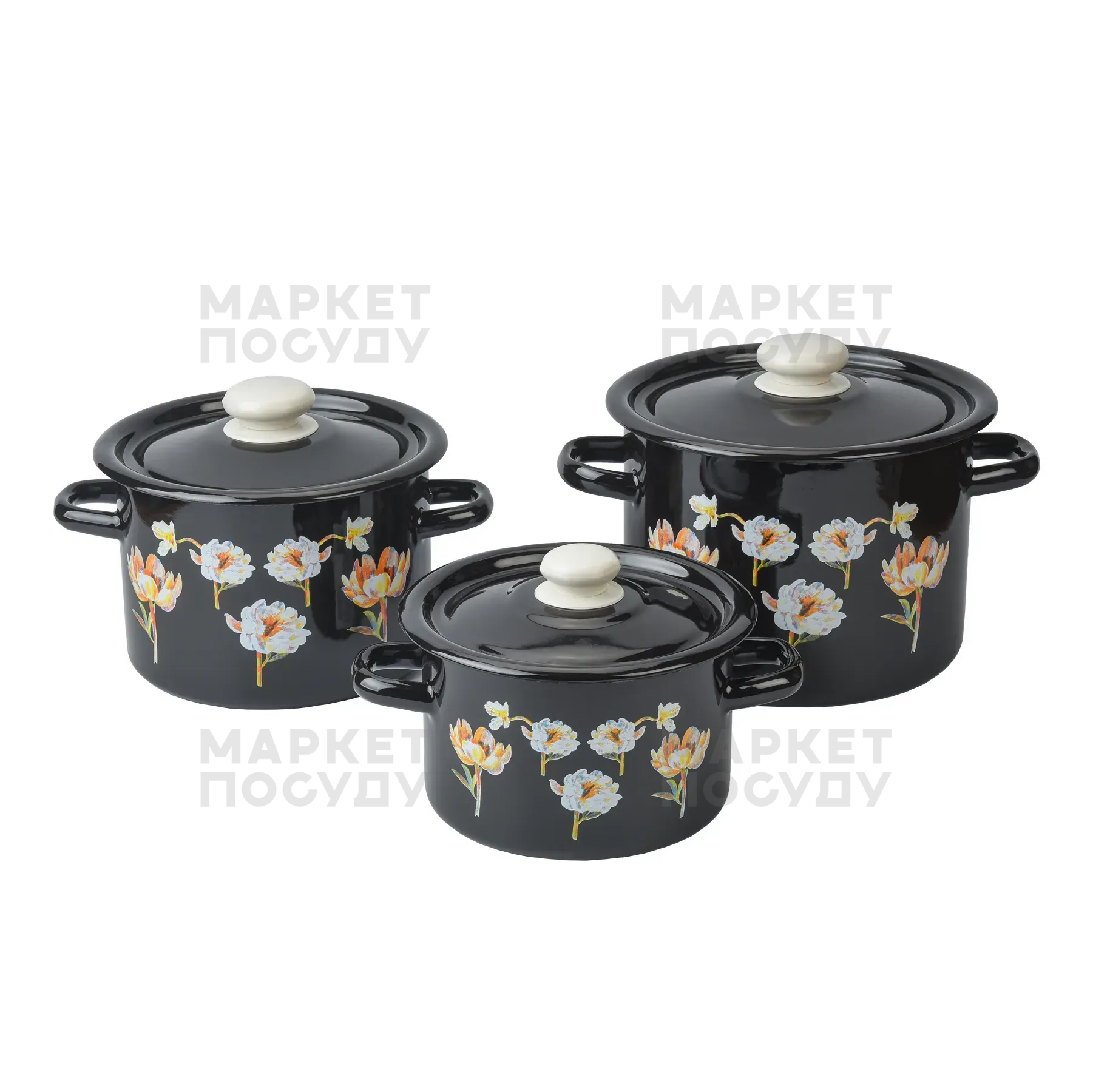 Набір каструль Idilia Квіткова фантазія чорна 3 предмети 2л/3л/4,5л (274)
