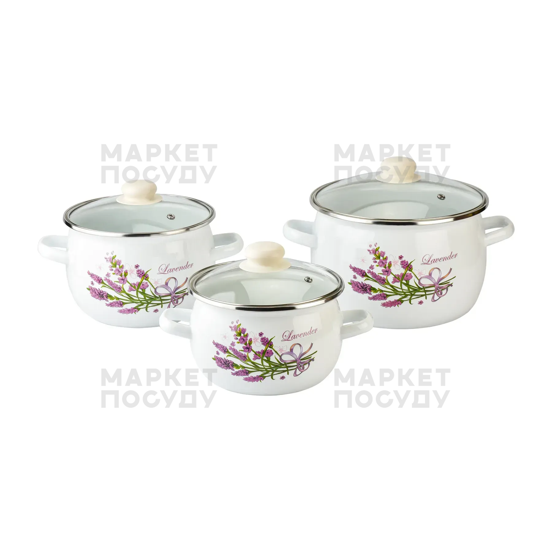 Набір каструль Idilia Букет лаванди бузковий 3 предмети 2,5л/3,5л/5л (6926)