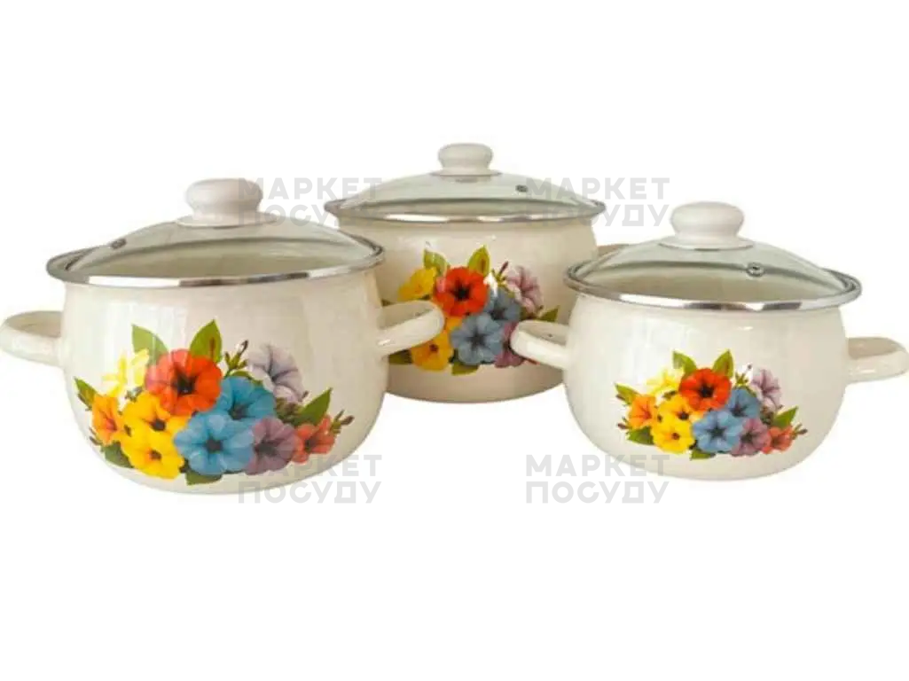 Набір каструль Idilia Петунія молочна 3 предмети 2,5л/3,5л/5л (6926)