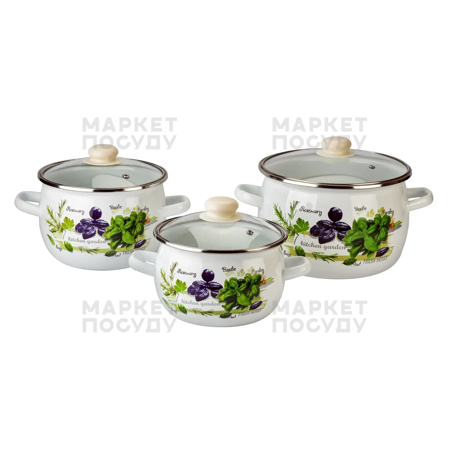 Набір каструль Idilia Зелень фреш 3 предмети 2,5л/3,5л/5л (6926)