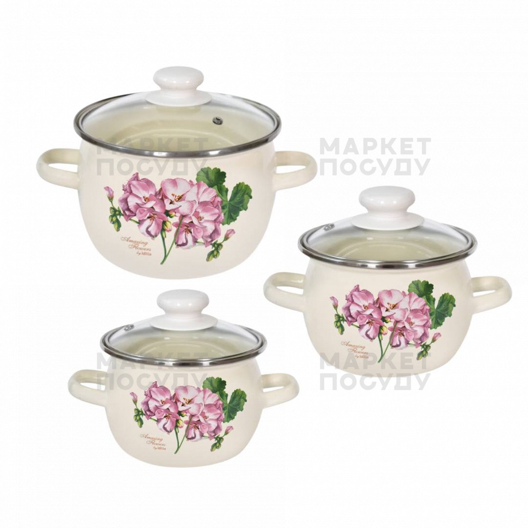 Набір каструль Idilia Пеларгонія молочна 3 предмети (6928)