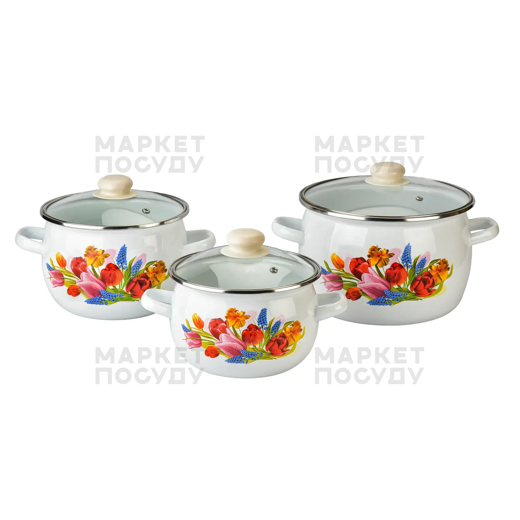 Набір каструль Idilia Весняний букет 3 предмети 1,5л/2,5л/3,5л (6928)