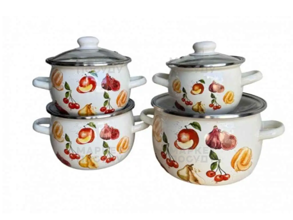 Набір каструль Idilia Фруктовий оазіс молочна 4 предмети 1,5л/2,5л/3,5л/5л (6929)