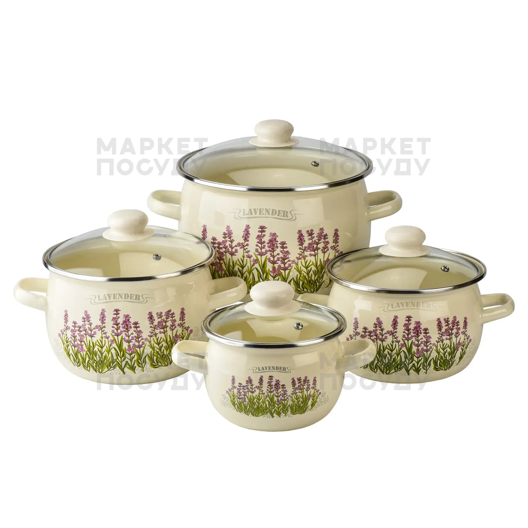 Набір каструль Idilia Лаванда молочна 4 предмети 1,5л/2,5л/3,5л/5л (6929)