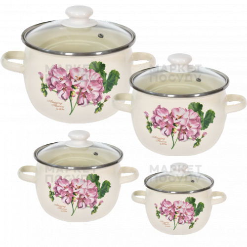 Набір каструль Idilia Пеларгонія молочна 4 пр (6929)