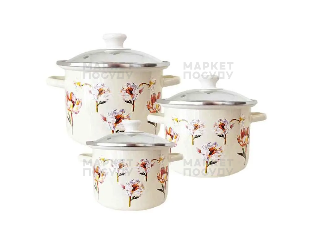 Набір каструль Idilia Квіткова фантазія молочна 3 предмети 2л/3л/5,5л (752)