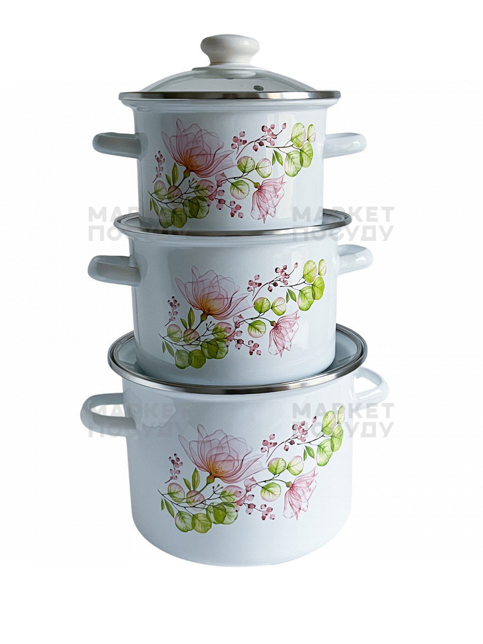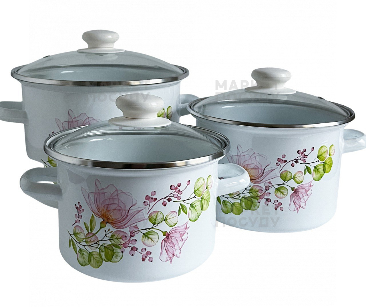 Набір каструль Idilia Квіткова вуаль біла 3 предмети (752)