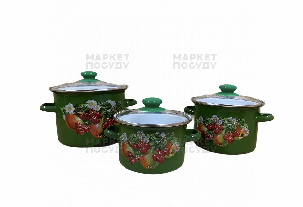 Набір каструль Idilia Вишні та яблука зелений 3 предмети (754)
