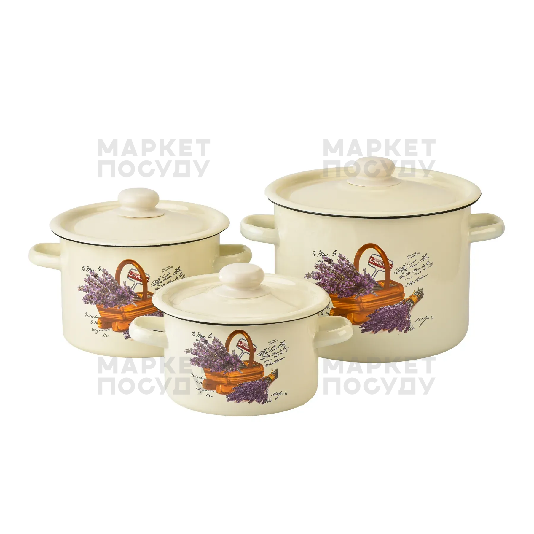 Набір каструль Idilia Кошик лаванди молочна 3 предмети 2,0 л; 3,0; 5,5 л (822)