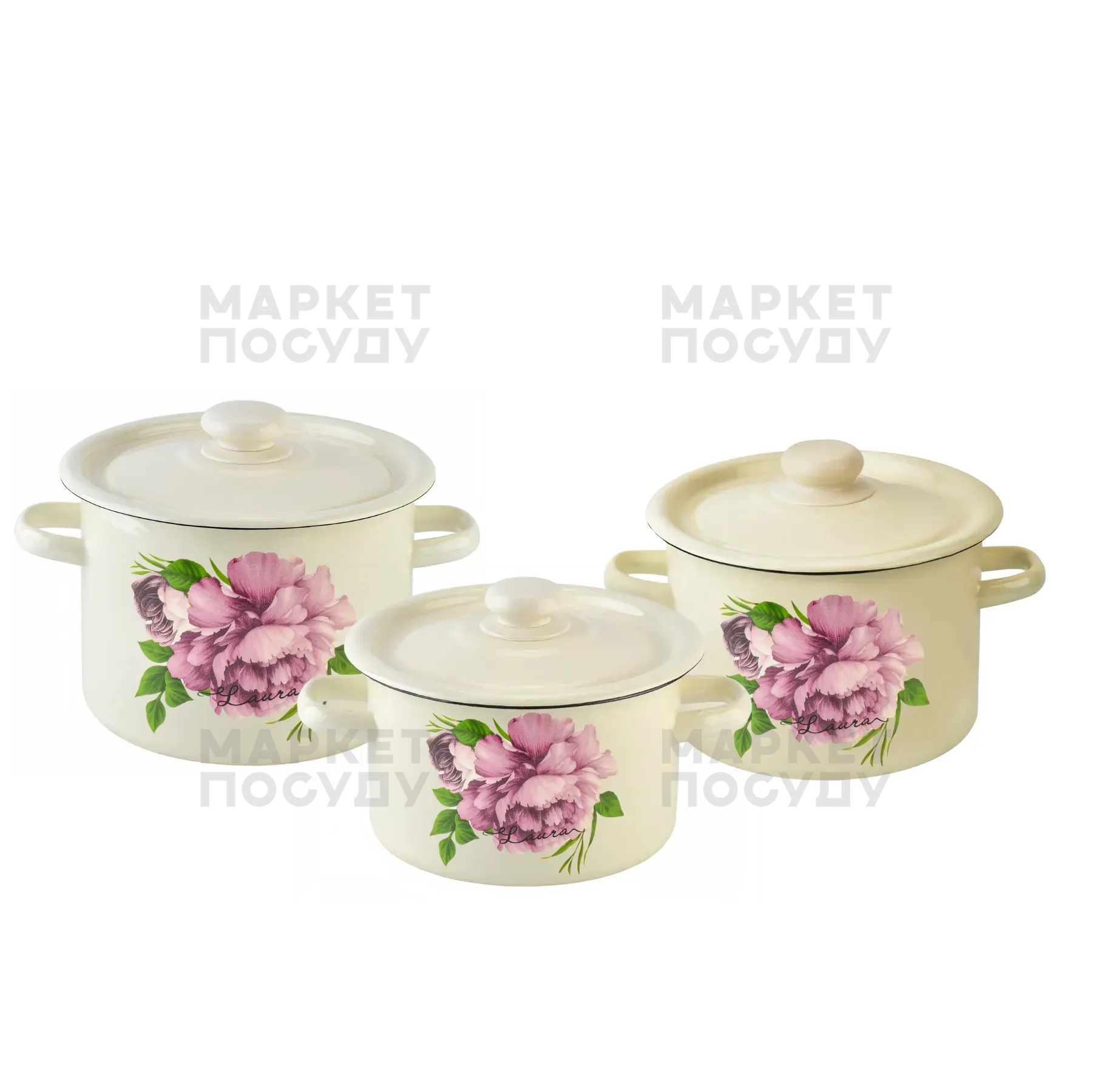 Набір каструль Idilia Лаура молочна 3 предмети 2,0 л; 3,0; 5,5 л (822)