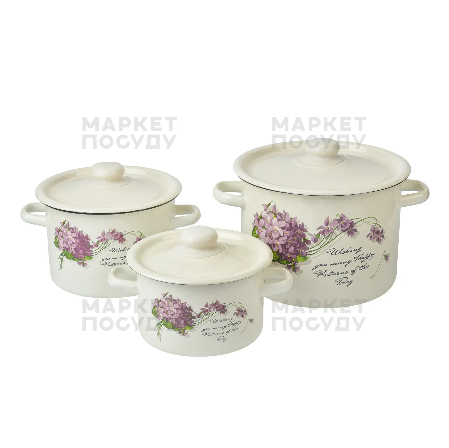 Набір каструль Idilia Віола біла 3 предмети 2,0 л; 3,0; 5,5 л (822)