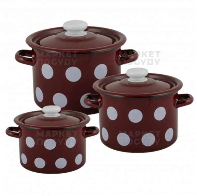 Набір каструль Idilia Білий горох бордо 3 пр (842)