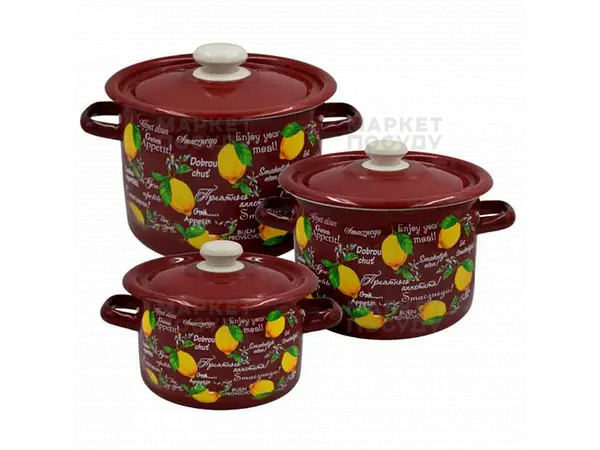 Набір каструль Idilia Фреш лимон (бордо) 3 предмети (842)