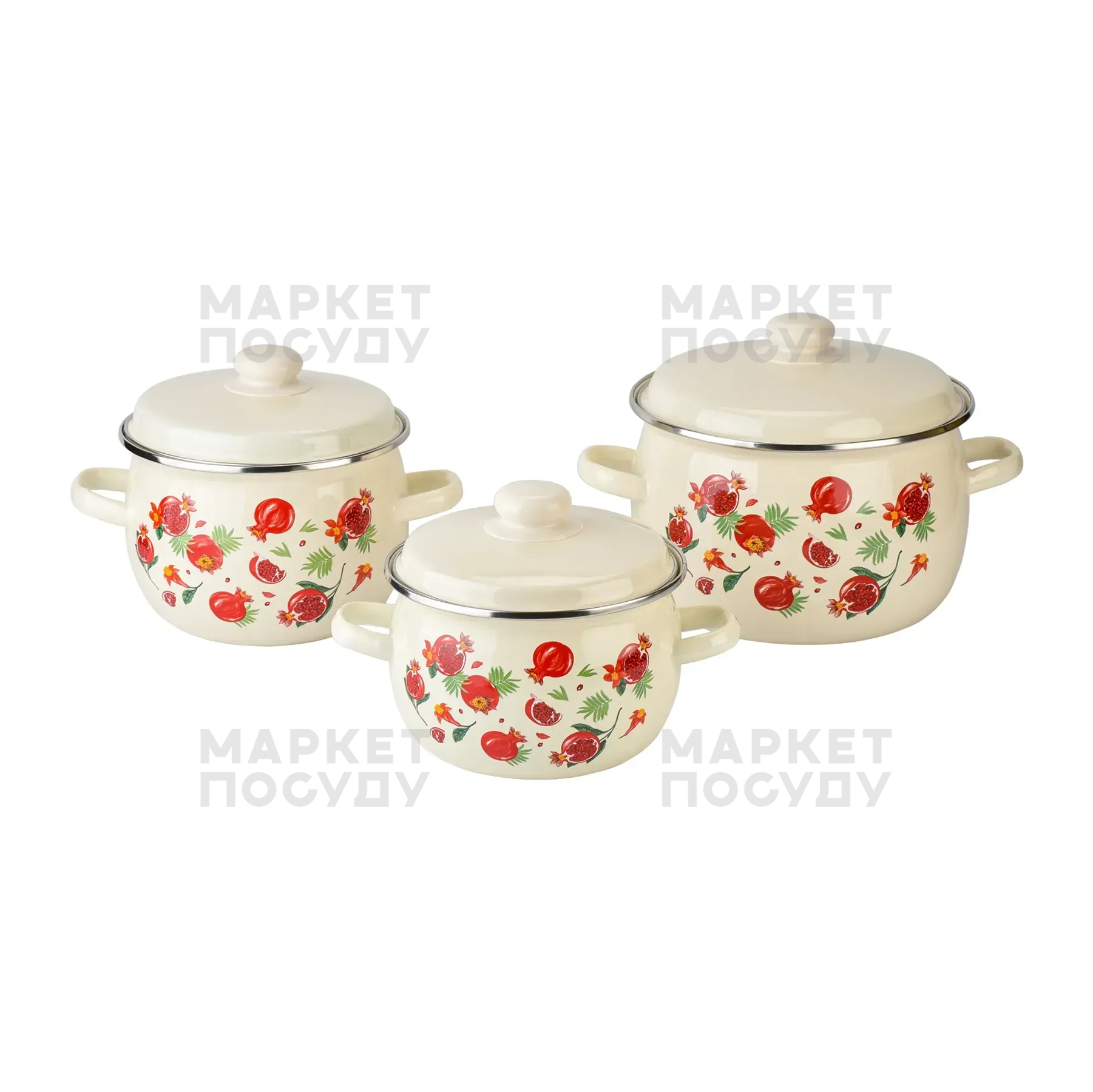 Набір каструль Idilia Гранат молочна 3 предмети 2,5л 3,5л 5,0л (926)