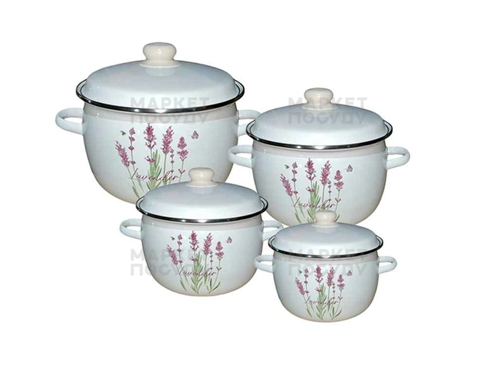 Набір каструль Idilia Цвітіння біла 4 предмети 1,5 л; 2,5 л; 3,5 л; 5,0л (929)