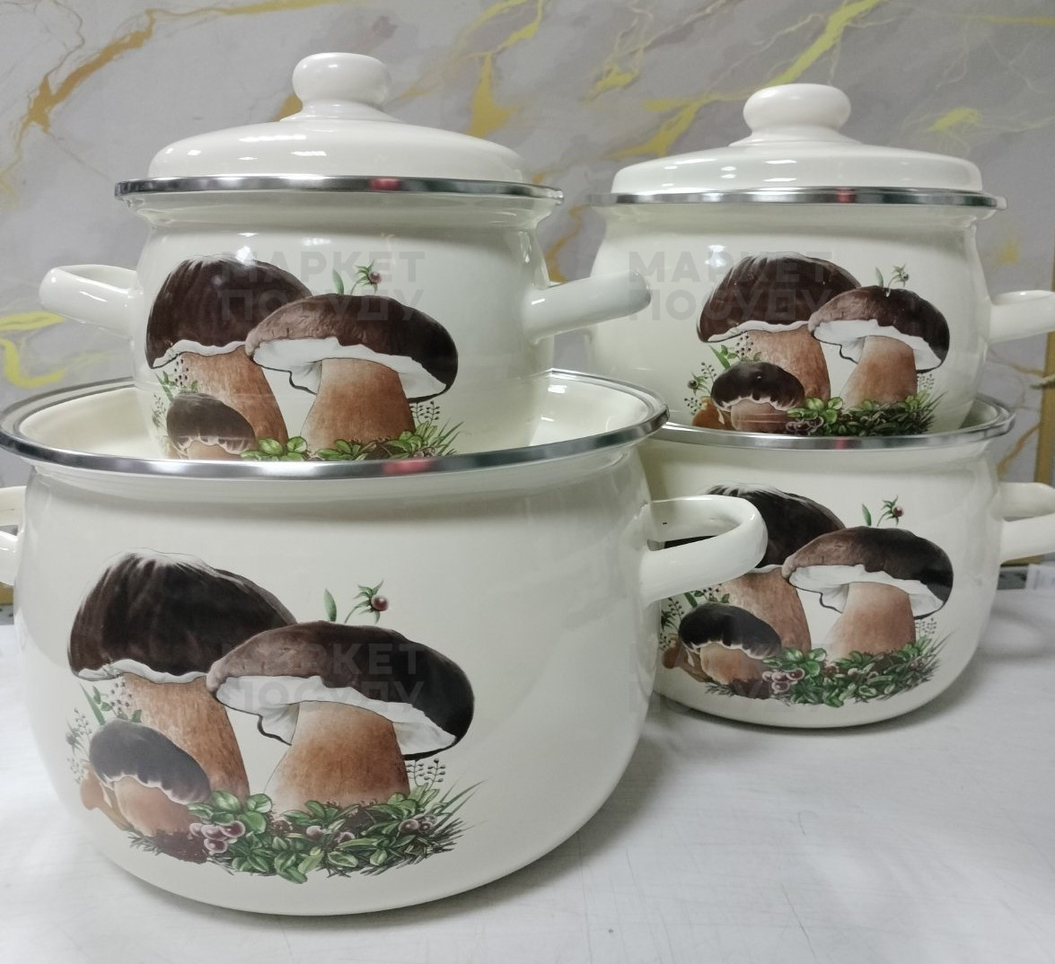Набір каструль Idilia Гриби молочна 4 предмети 1,5л/2,5л/3,5л/5,0л (929)