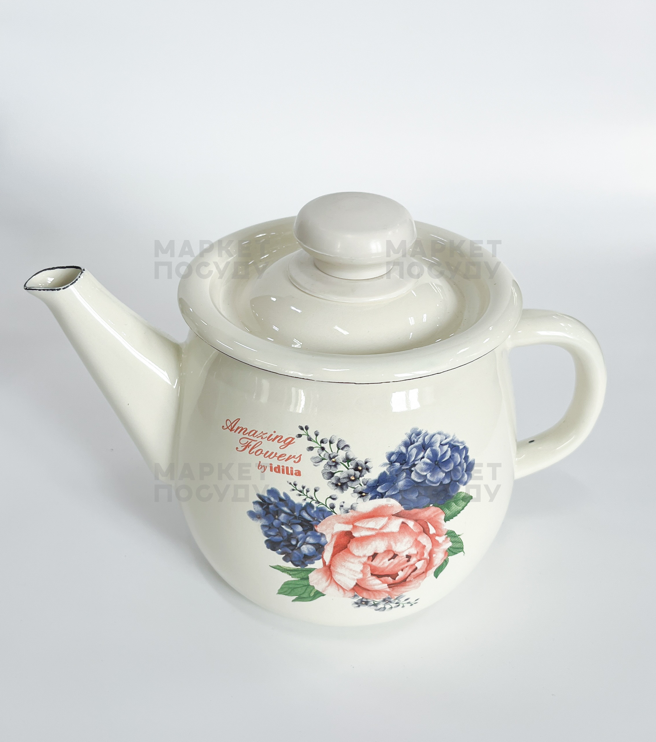 Чайник 1л "Піон" з носиком і кришкою. Емальований чайник ТМ Idilia від українського виробника зручний у використанні, ергономічний, а його зовнішній вигляд робить чаювання більш затишним.