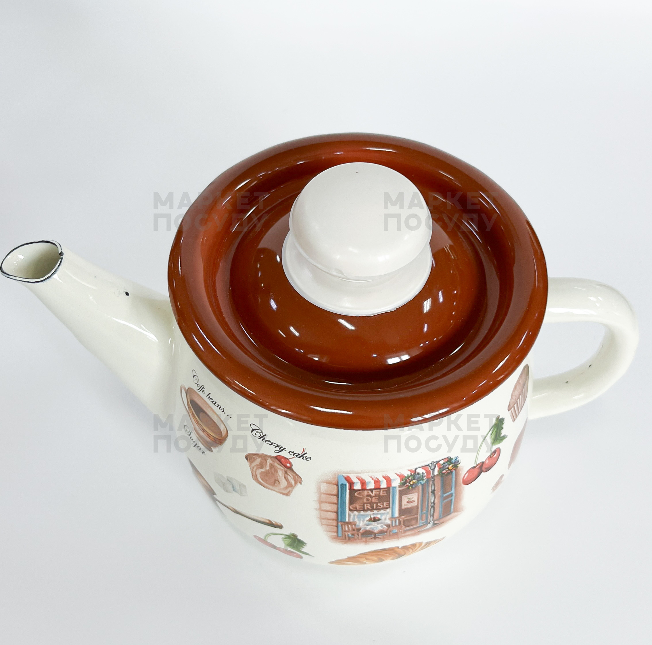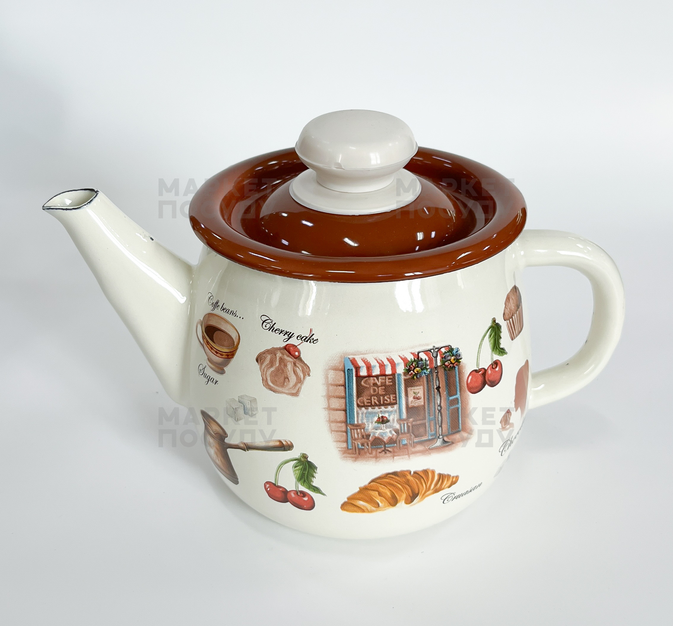 Чайник 1л "Кафе де Шарі" з носиком і кришкою. Емальований чайник ТМ Idilia від українського виробника зручний у використанні, ергономічний, а його зовнішній вигляд робить чаювання більш затишним.