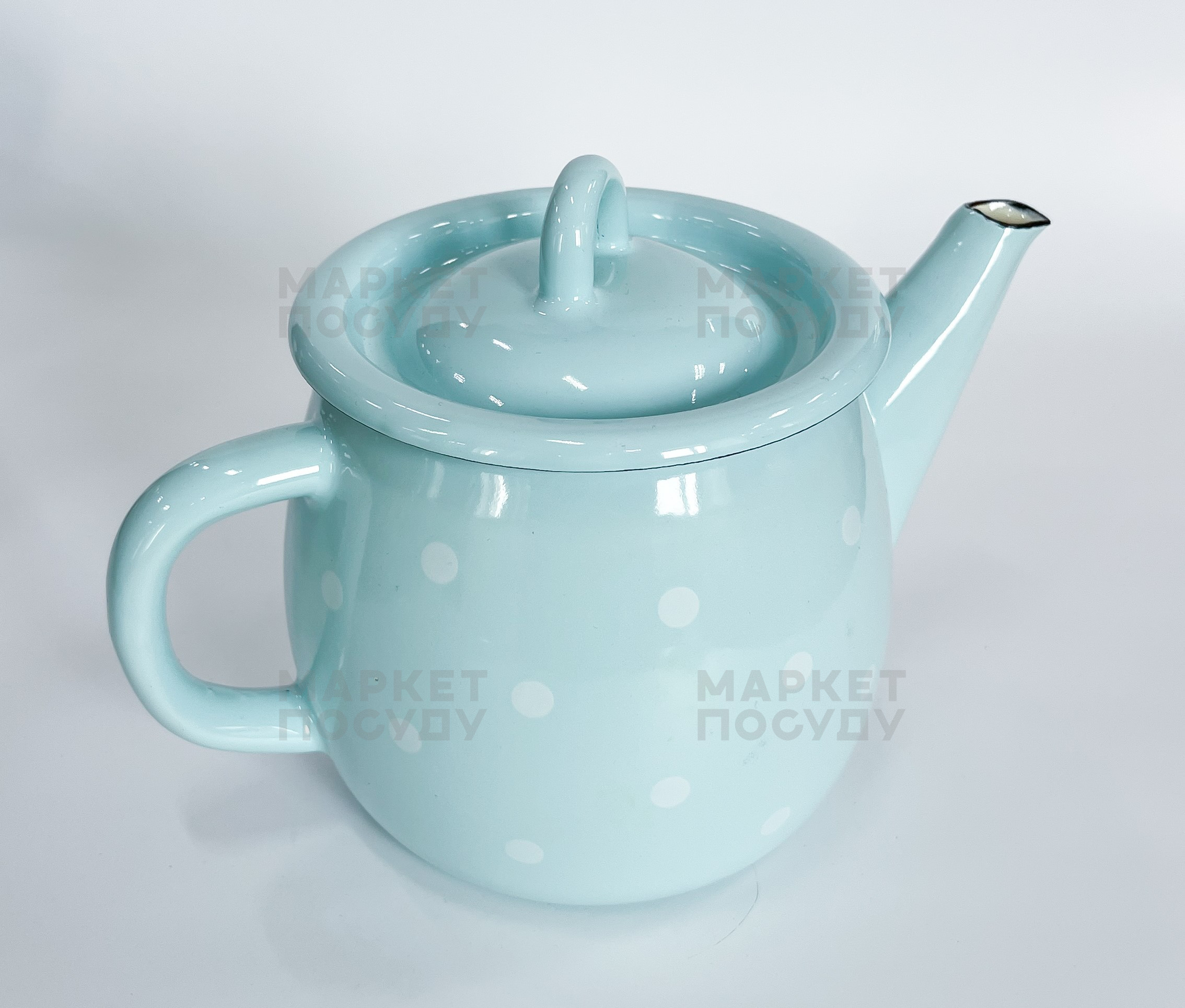 Чайник 1л "Бірюзова полька" з носиком і кришкою. Емальований чайник ТМ Idilia від українського виробника зручний у використанні, ергономічний, а його зовнішній вигляд робить чаювання більш затишним.