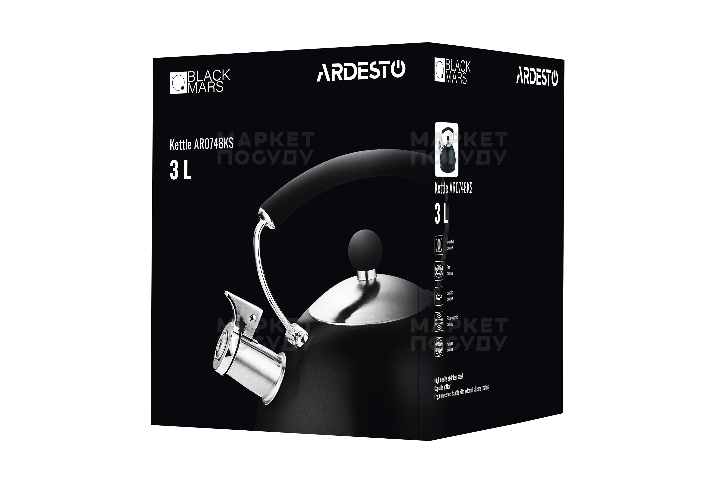 Чайник для плити Ardesto Black Mars чорний зі свистком 3 л (AR0748KS)