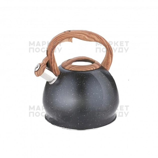 Чайник оснащений бакелітовою ручкою та кришкою, що не нагріваються, забезпечуючи зручність і безпеку під час використання. Вбудований свисток сповістить про закипання води, що робить процес приготування ще зручнішим.
