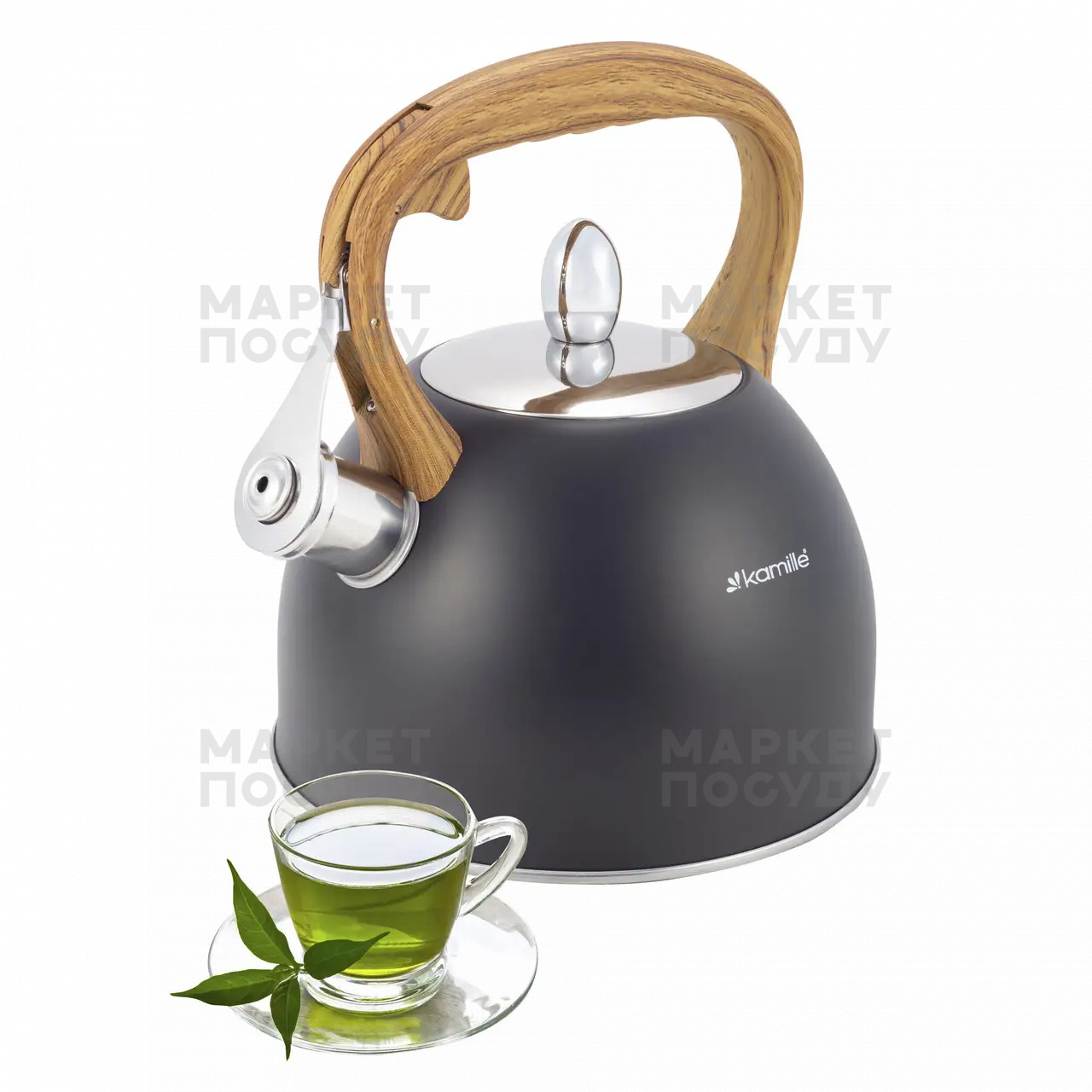 Чайник для плити Kamille чорний зі свистком 2.5 л (KM1096)