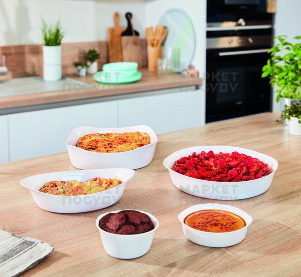 - Непрозорість. Красивий білий колір. Страву з духовки можна відразу ставити на стіл – вона стане його прикрасою.