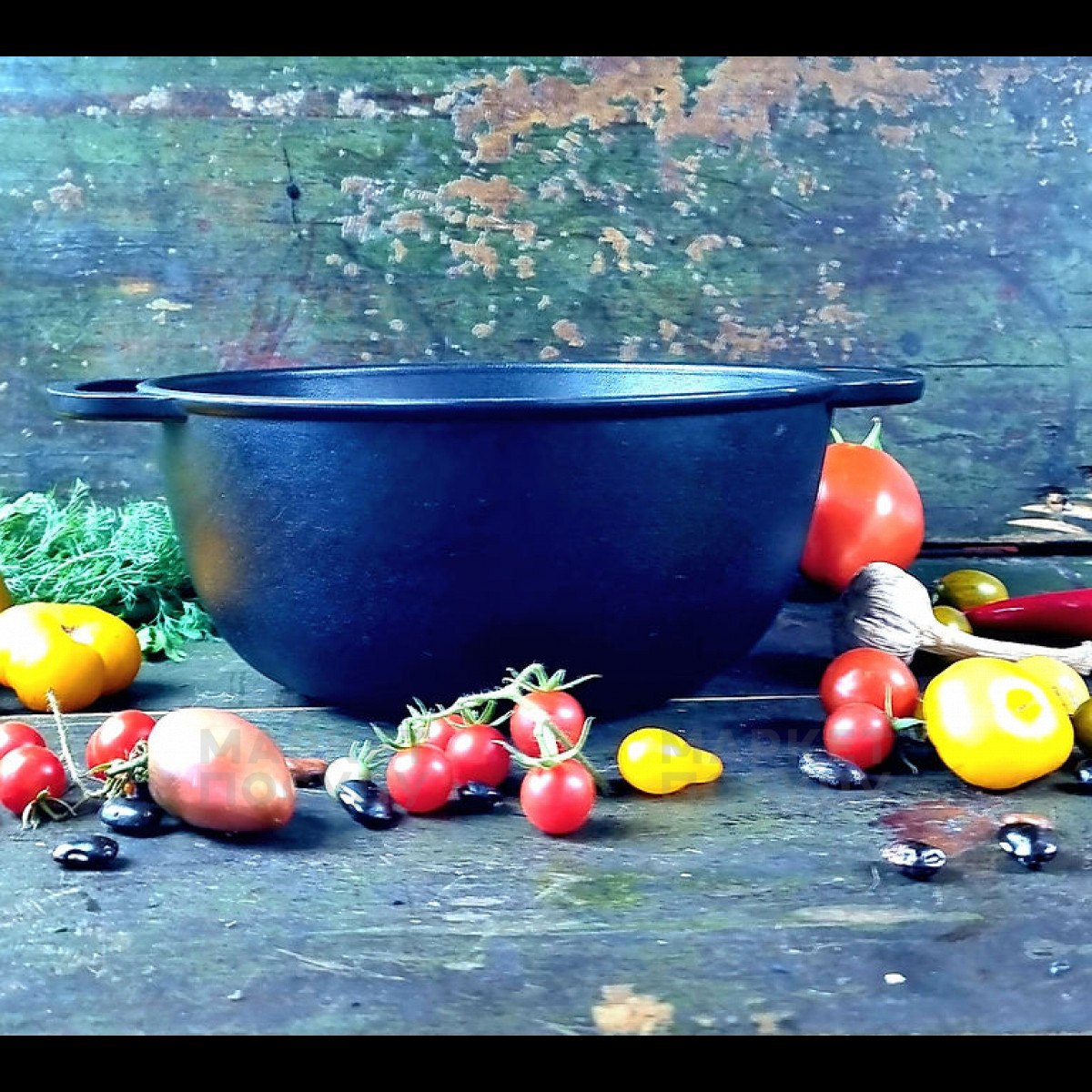 Залізо з вмістом вуглецю більше 2,14%. Якщо менше, то сталь. Залізо у чистому вигляді! У нашому випадку без будь-якого покриття (без емалі). Тому може іржавіти, якщо залишати мокрою! Важка! Не плутати зі старою бабусиною чавунною сковорідкою з литого алюмінію. Покриття на чавунному посуді утворюється в процесі прожарювання (якщо нова). А в процесі приготування воно постійно оновлюється. Але це не антипригарне покриття, як багато хто чомусь думають (бо чорне?), а найтонша полімерна плівка із запеченого масла (жиру), яка захищає вашу посудину від корозії, а також має гідрофобні властивості (відштовхує воду). І тому, щоб не прилипало, готувати потрібно з олією. Хіба що коржі можна без олії пекти. І так. На чавуні можна ПЕКТИ. Тому що він, крім усього іншого, має високу теплову емісію. Це є чи не головна перевага чавуну. Здатність віддавати тепло. Тепло від добре прогрітої сковороди ви відчуєте за півметра! Подібного ефекту вам від інших матеріалів не отримати. Теплова емісія у чавуну в 10 разів вища, ніж у алюмінію. Це означає, що продукт готується не тільки в місці торкання поверхні, а практично повністю. Пропікається. І якщо на алюмінієвій пательні млинці ви смажите, то на чавунній ви їх печете)