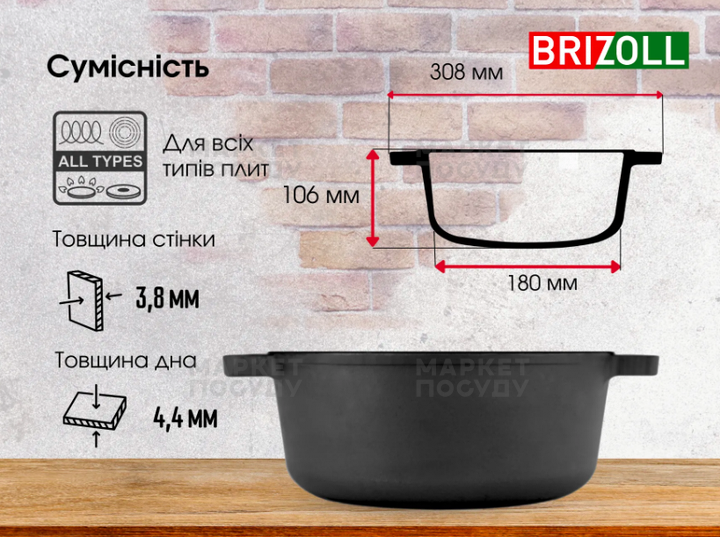 Каструля Brizoll чорна чавунна 4 л (P-4L-6)