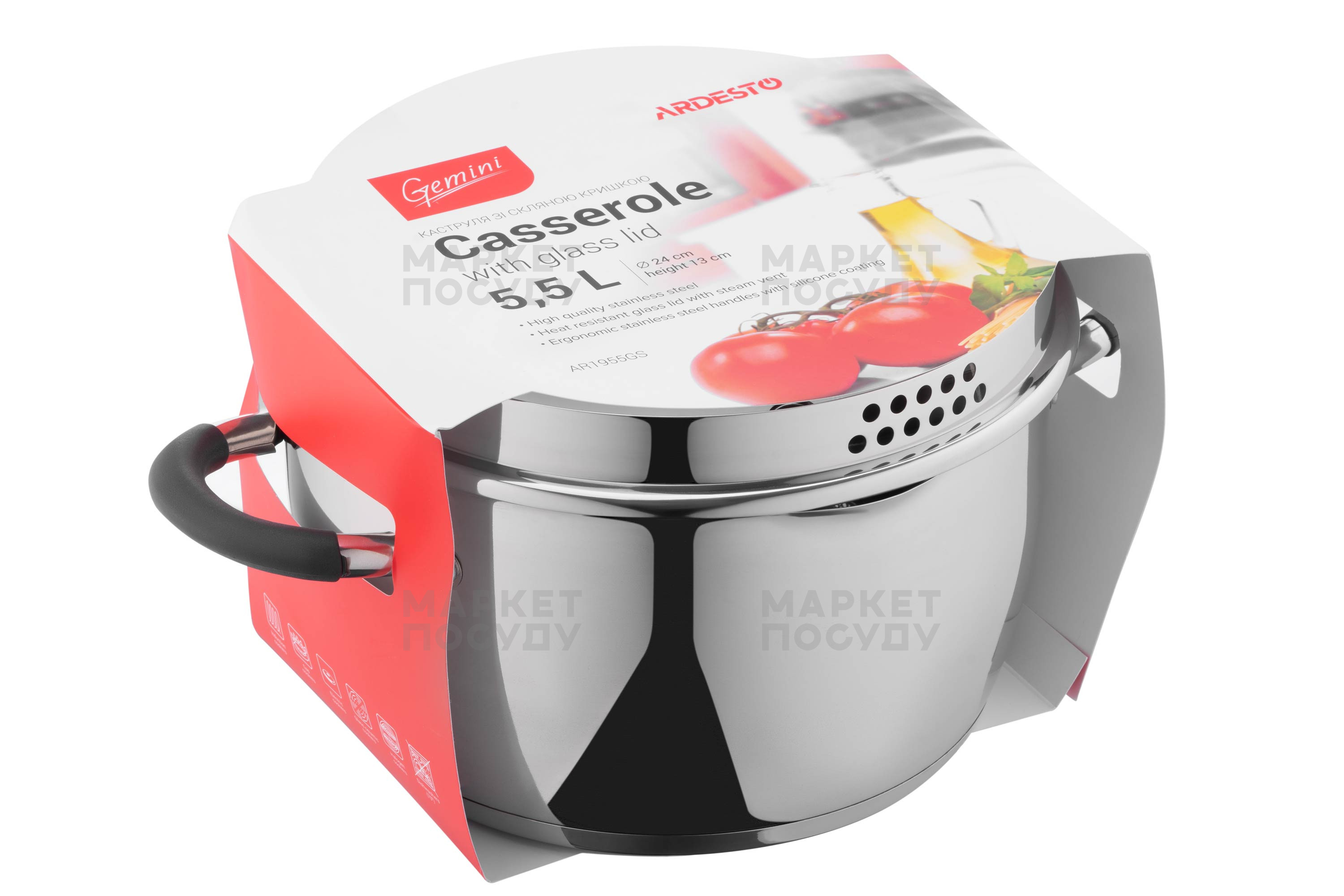 Каструля Ardesto Gemini Salerno сіра з нержавіючої сталі 5.5 л (AR1955GS)