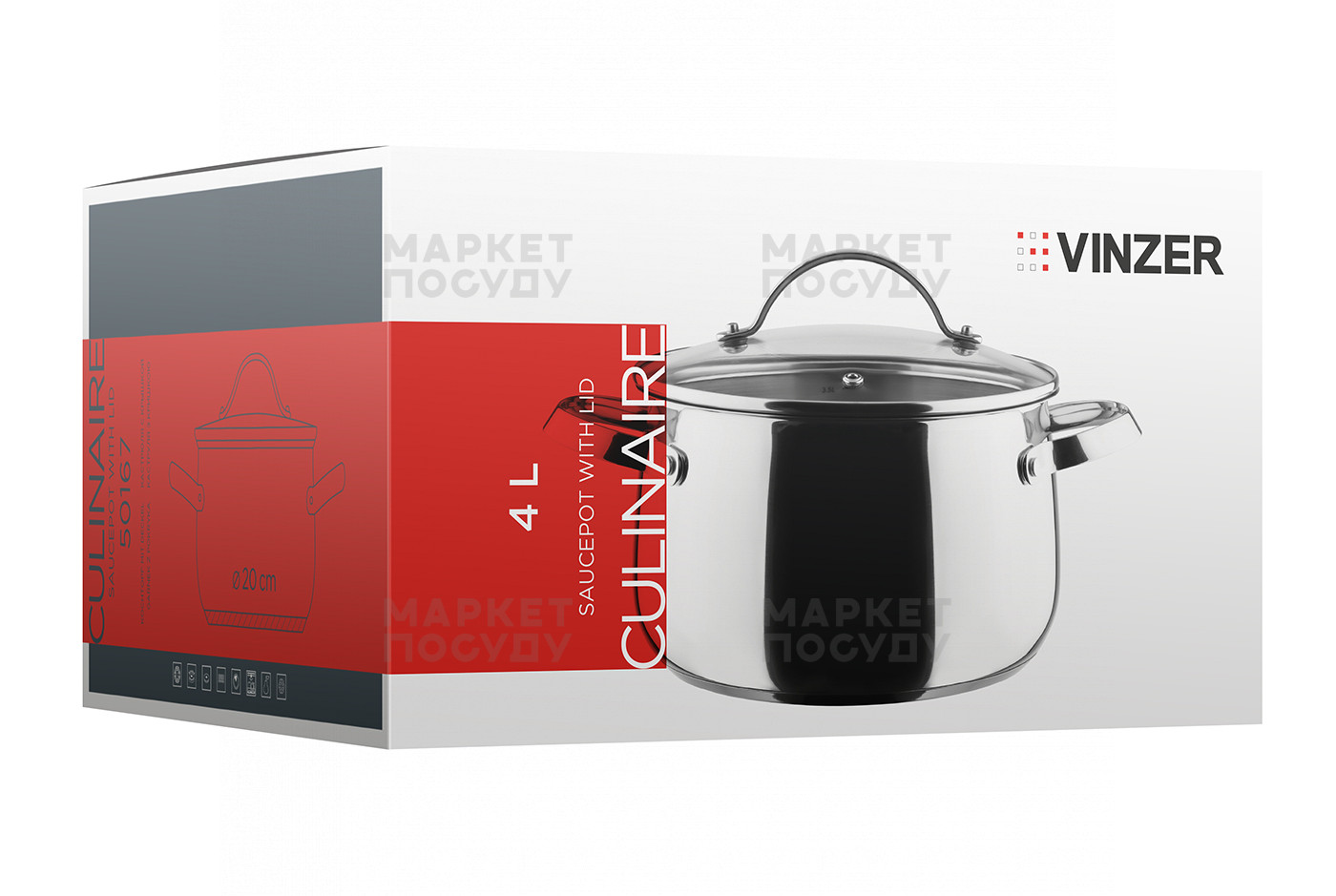 Каструля Vinzer Culinaire Series сіра з нержавіючої сталі 4 л (50167/89167)