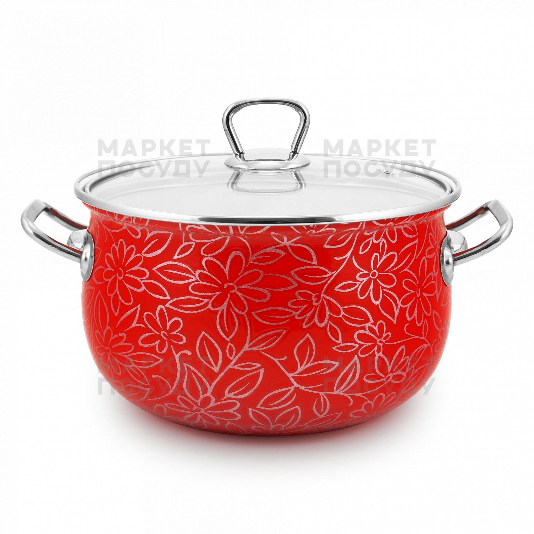 Каструля Interos Ажур Червоний червона з емальованої сталі 5.1л (2598B)