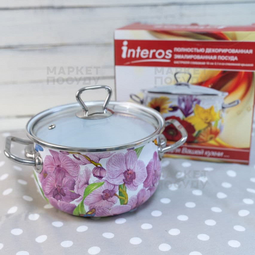 Каструля Interos Орхідея біла з емальованої сталі 2.1л (15116)