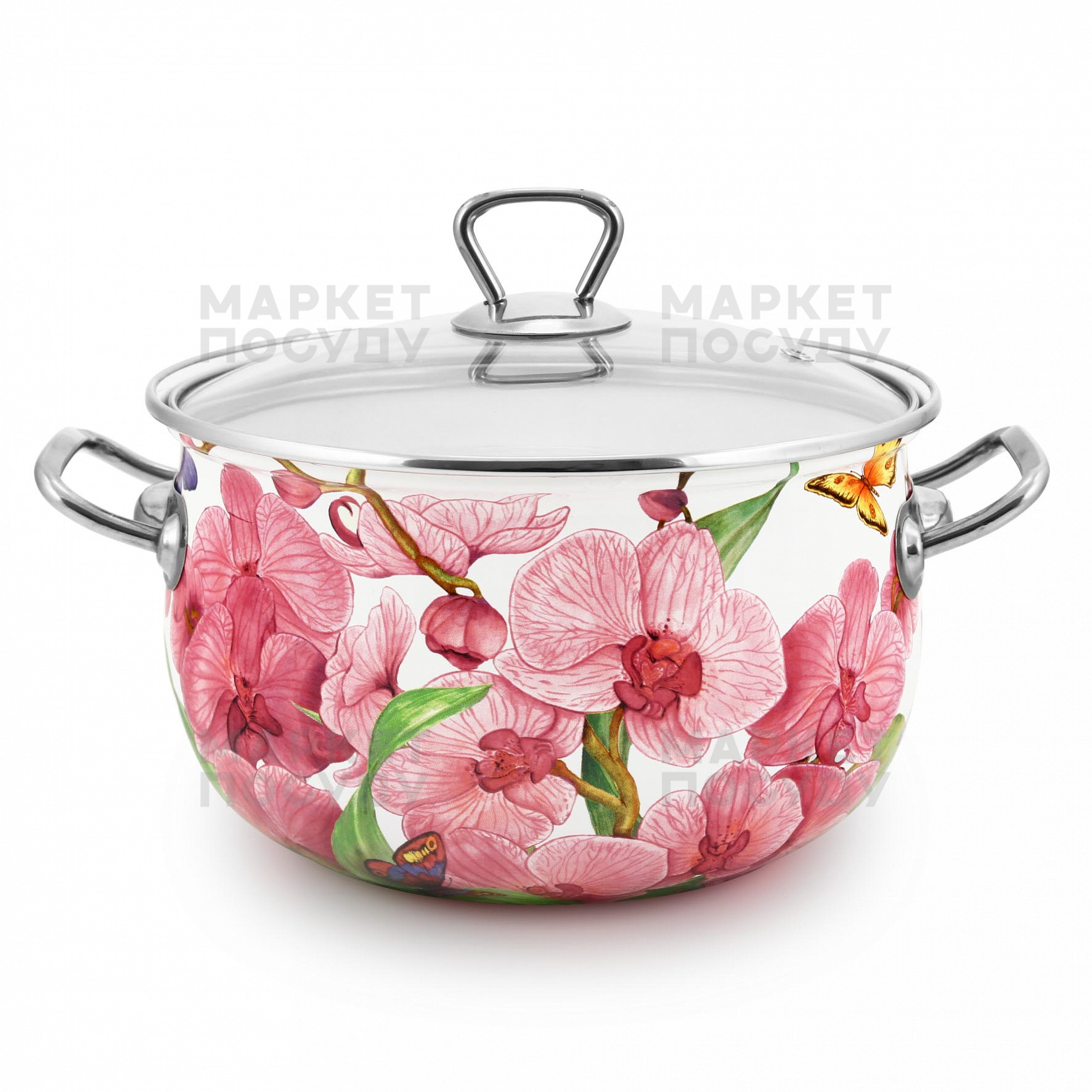 Каструля Interos Орхідея біла з емальованої сталі 5.7л (15116)