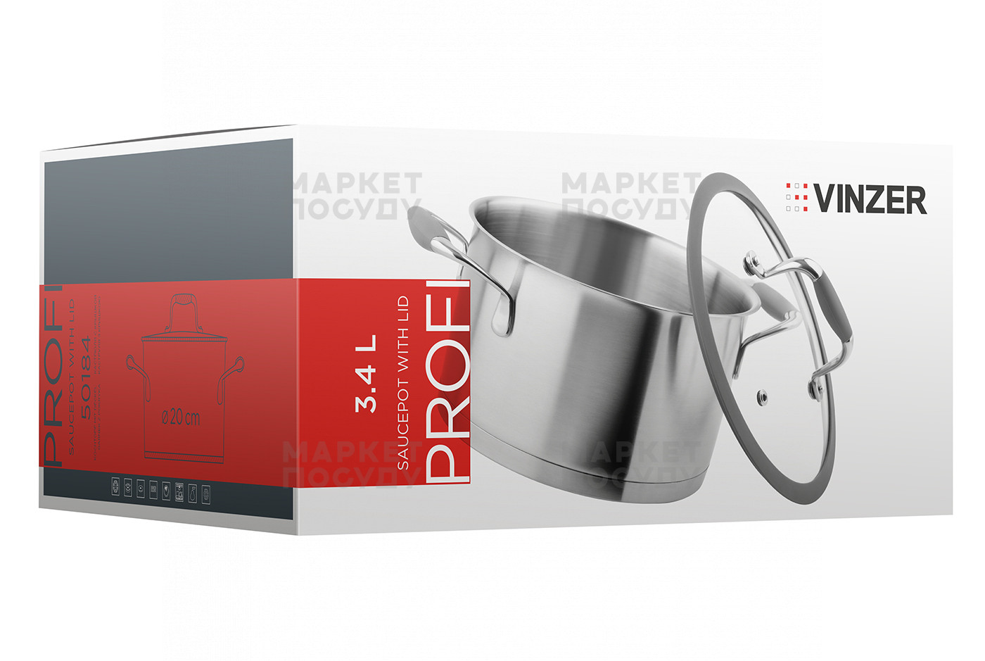 Каструля Vinzer Profi Series сіра з нержавіючої сталі 5.9 л (50185)