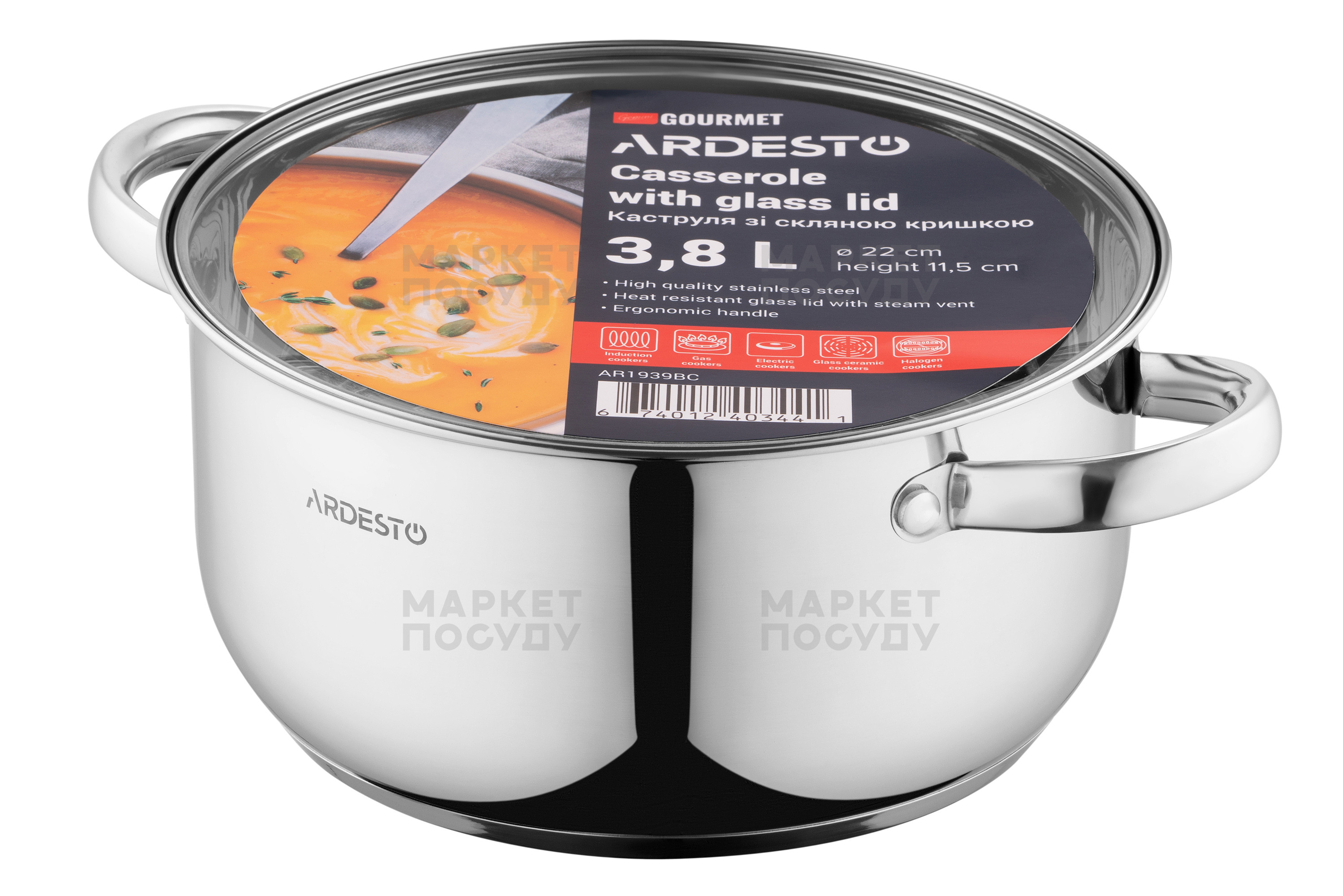 Каструля Ardesto Gemini Gourmet Aosta сіра з нержавіючої сталі 3.8 л (AR1939BC)