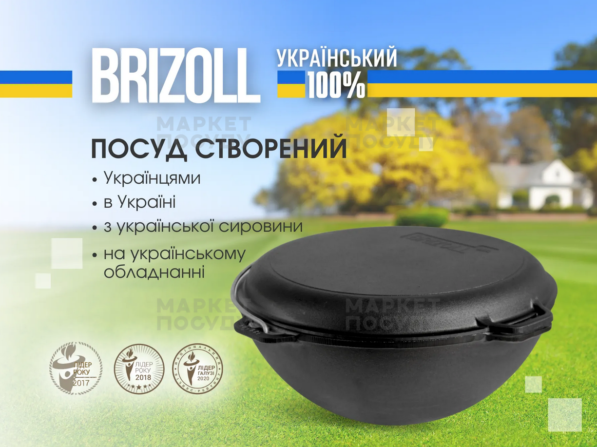 Казан чавунний 10 л Brizoll Азійський з дужкою та кришкою-сковородою (KA10-2)