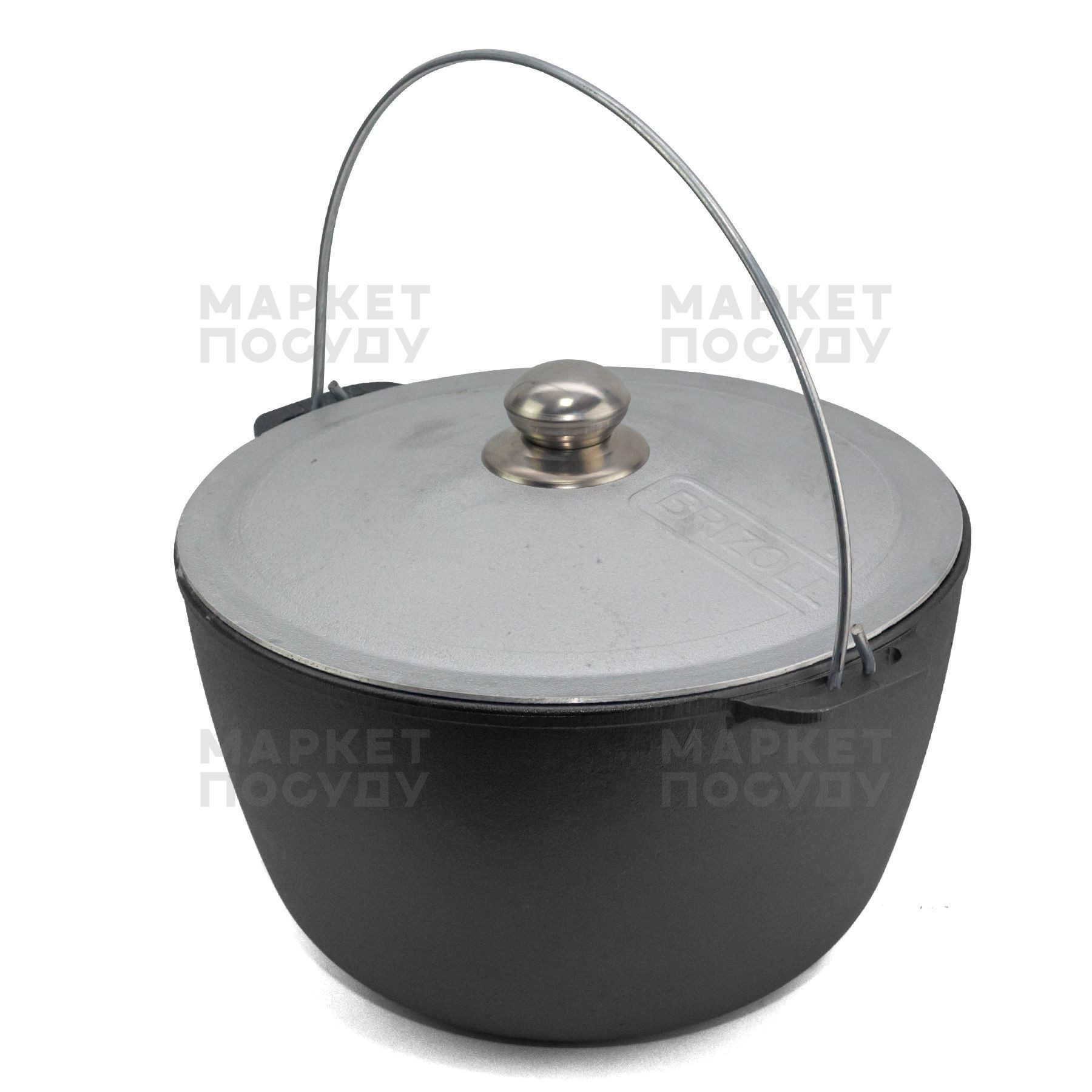 Казан чавунний 10 л Brizoll Туристичний з дужкою та алюмінієвою кришкою (KT10-4)