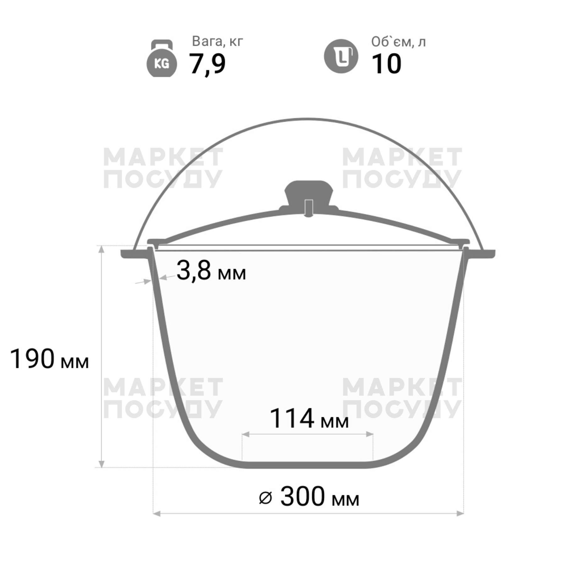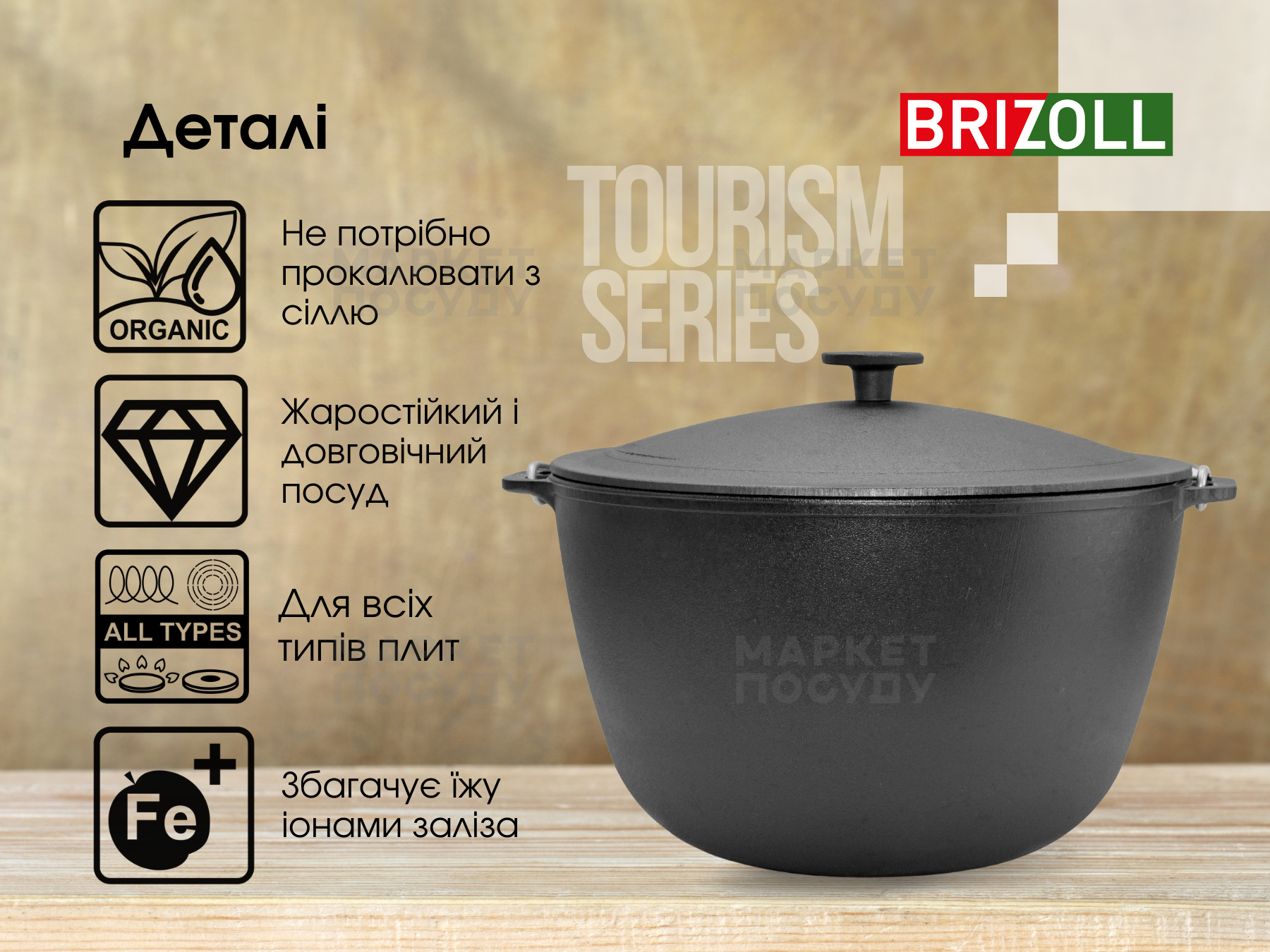 Казан чавунний 10 л Brizoll з дужкою та кришкою (KT10-1)