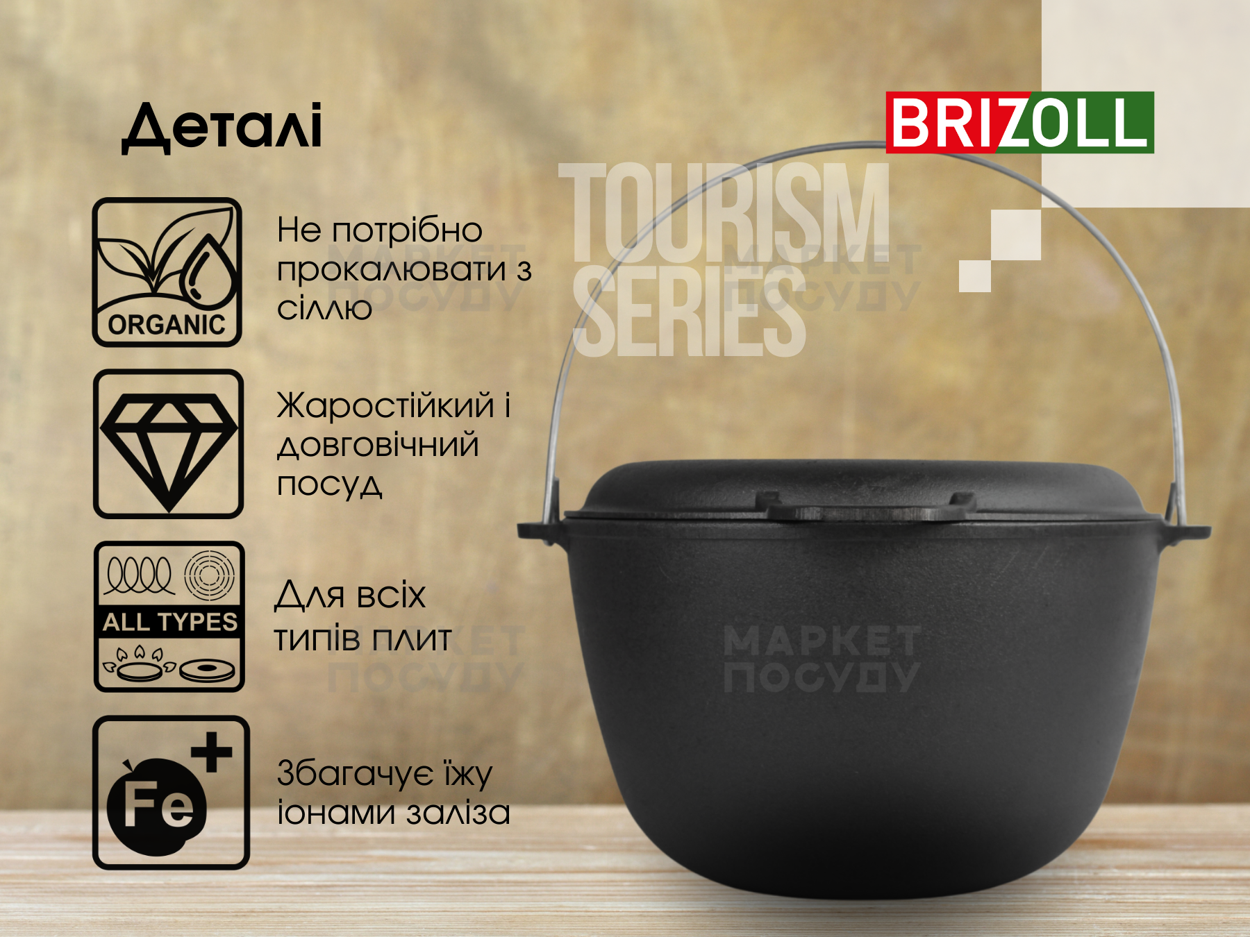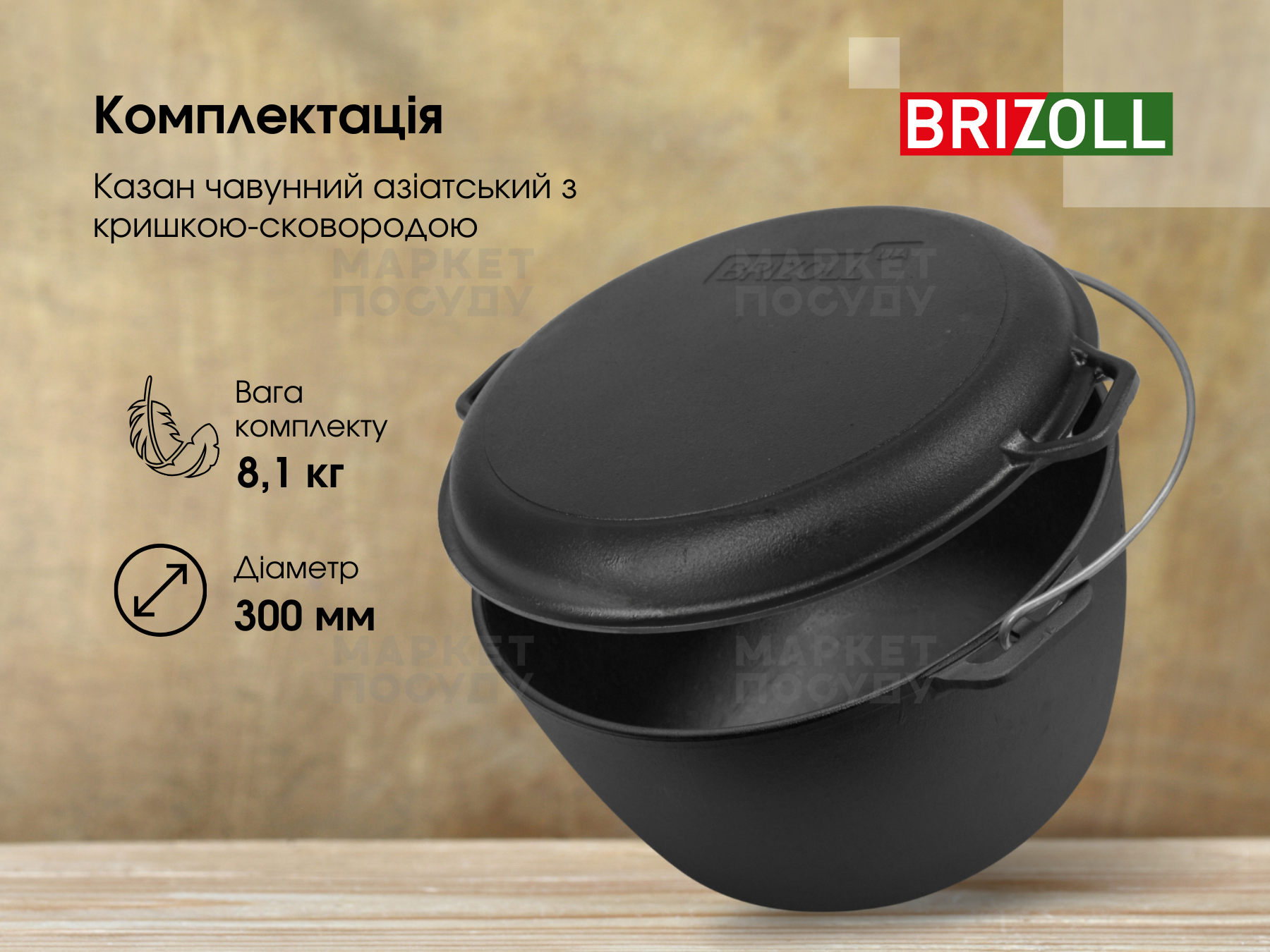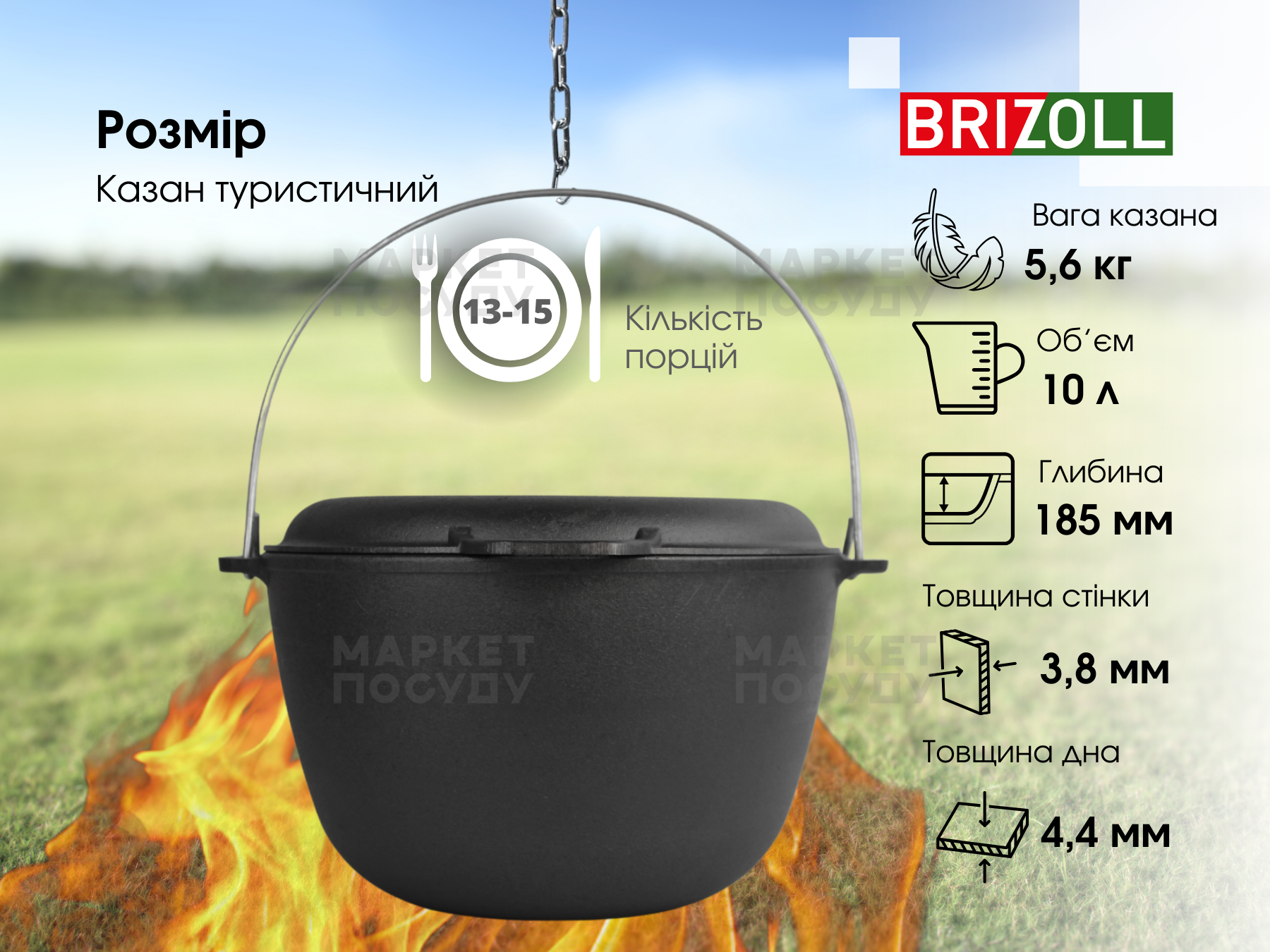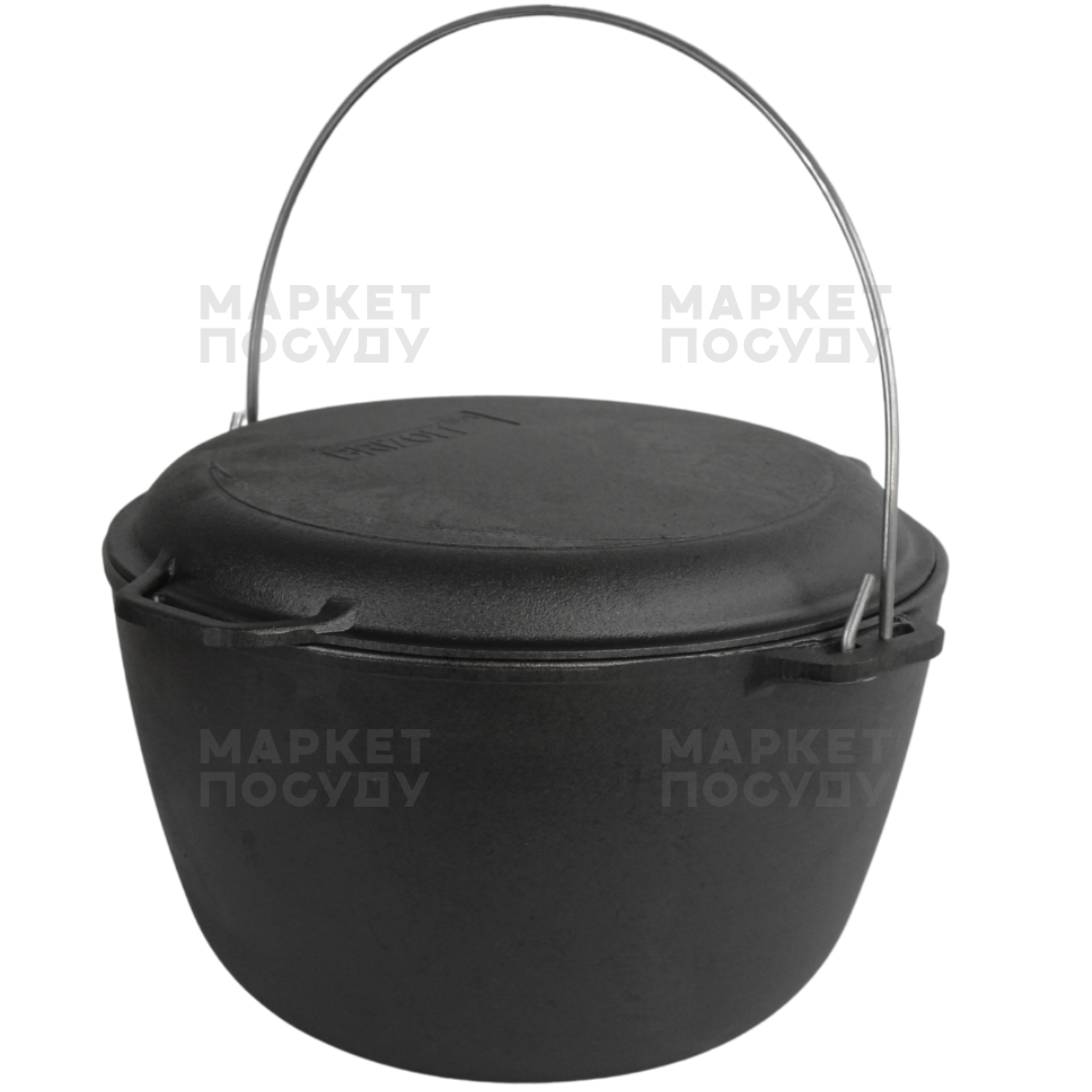 Казан чавунний 10 л Brizoll з дужкою та кришкою-сковородою (KT10-2)