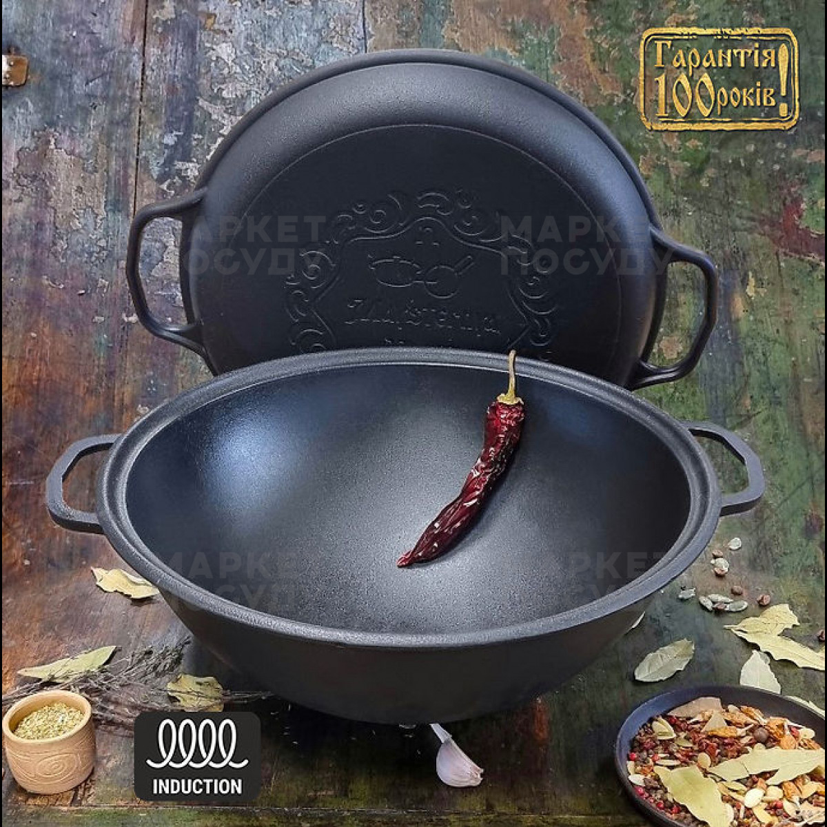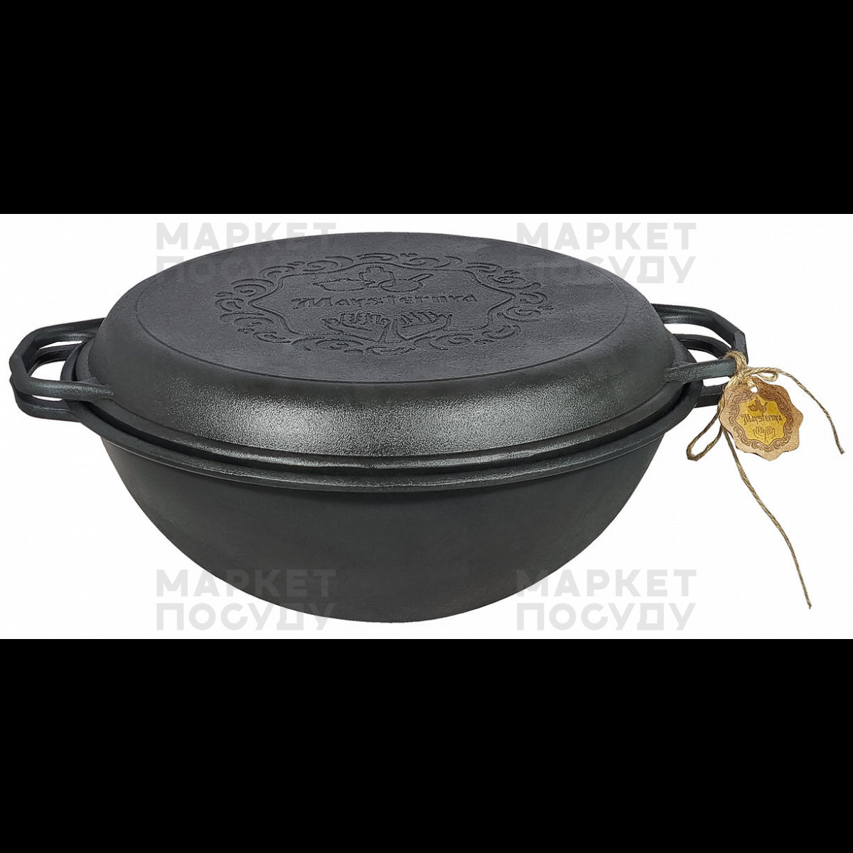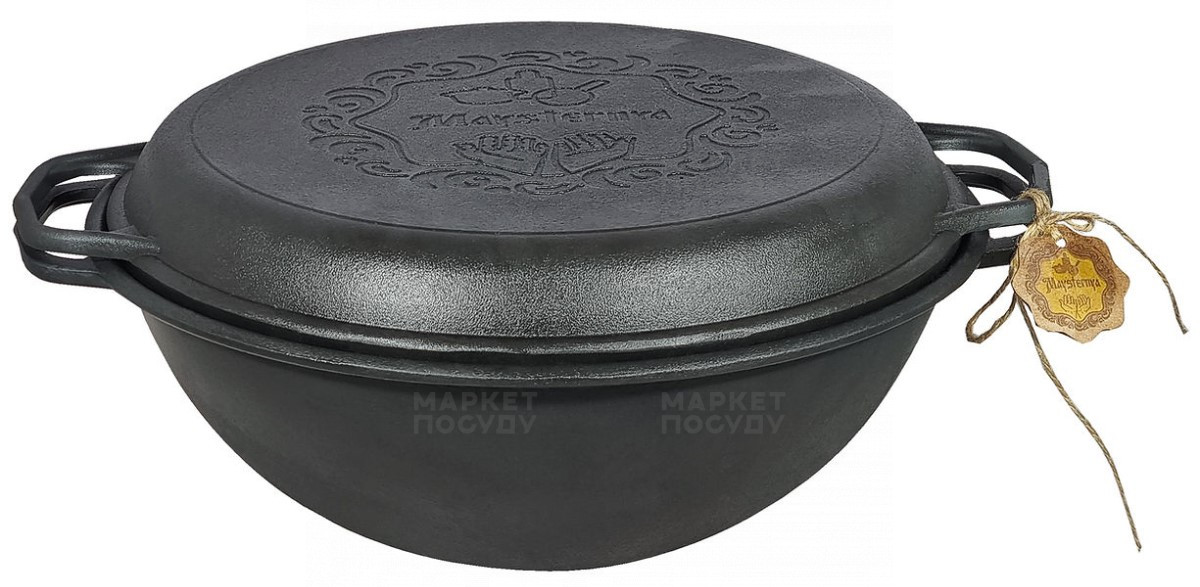 Казан чавунний 12 л Maysternya WOK з кришкою-сковородою (V12CPWokУк)